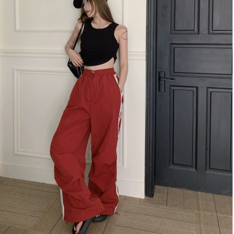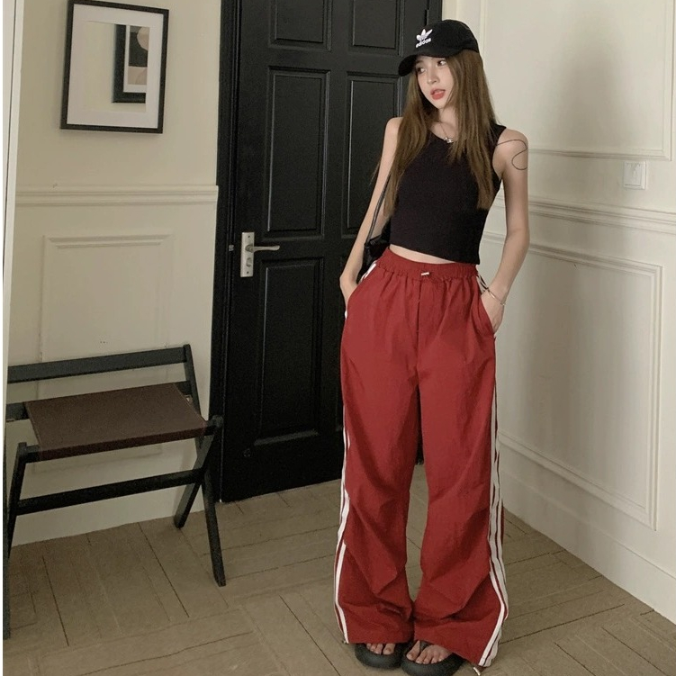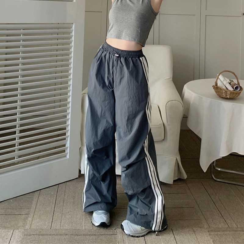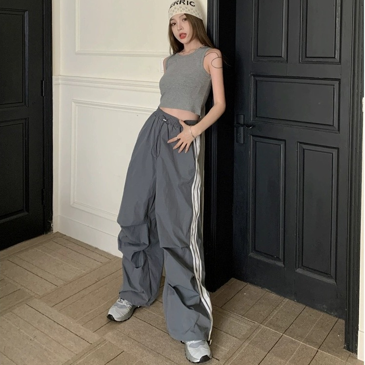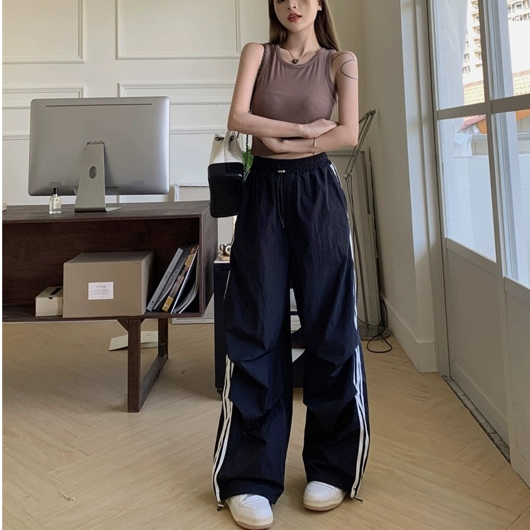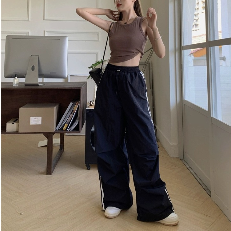 ✨【READY STOCK】Bella Women's High-Waist Cargo Baggy Pants All-Match Wide Leg Straight Long Pants
