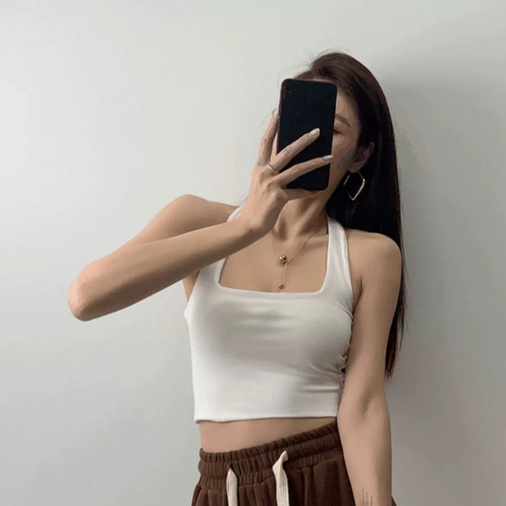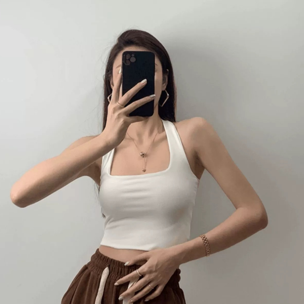 ✨【READY STOCK】Bella Women's Solid Color Halter All Match Tank Tops Camisole