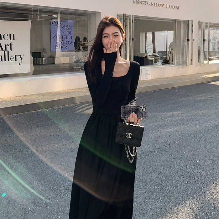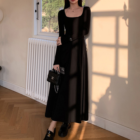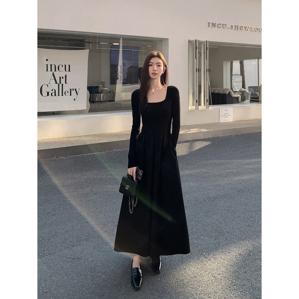✅【READY STOCK】Beryl Hepburn Style Classic dress for women Solid Color Korean Style Slim Dress