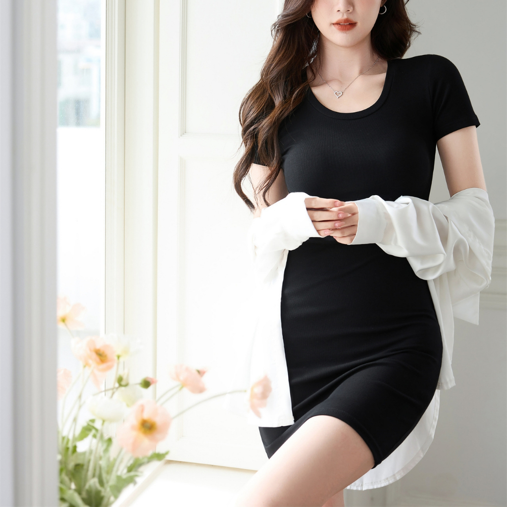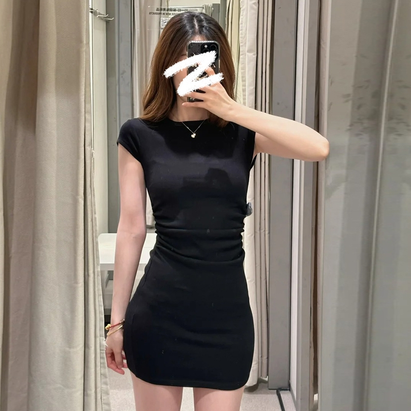✅【READY STOCK 】Beryl Solid Color Fit Body Dress For Women Short-Sleeved Above The Knee Korean Style Dress