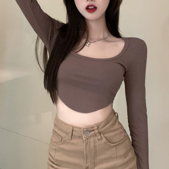 【READY STOCK】 CherryShop⭐Crop Tops Long Sleeve Top tshirt inner wear Cropped Crop Top Shipping from Johor