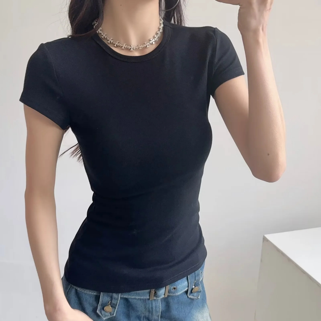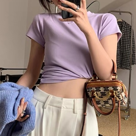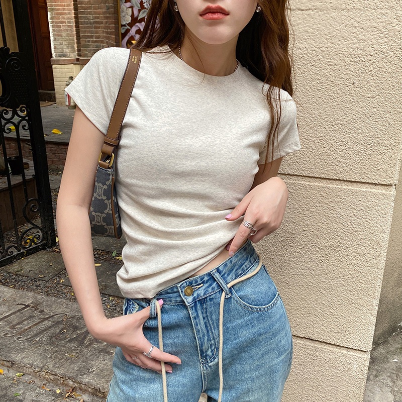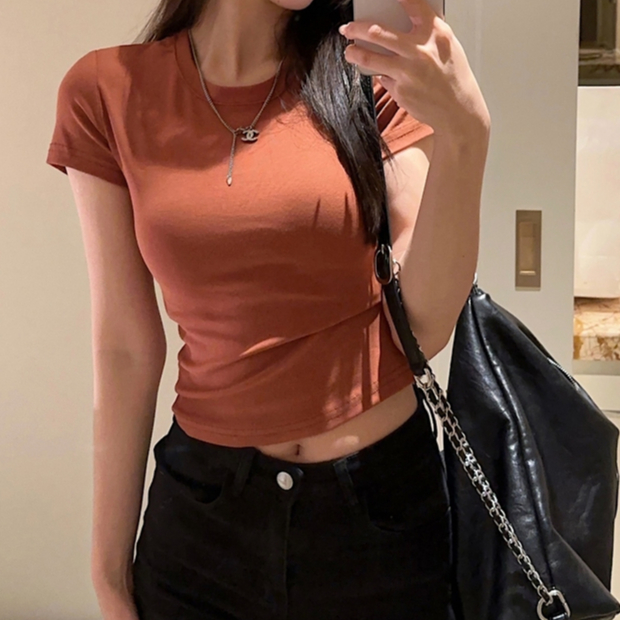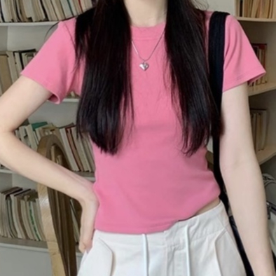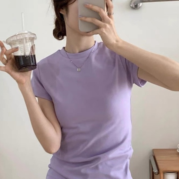 【READY STOCK】 CherryShop⭐Crop Tops Round Neck Short Sleeve Basic Top Simple Inner Wear