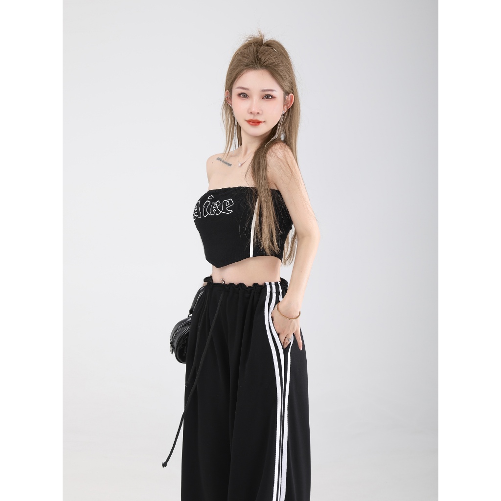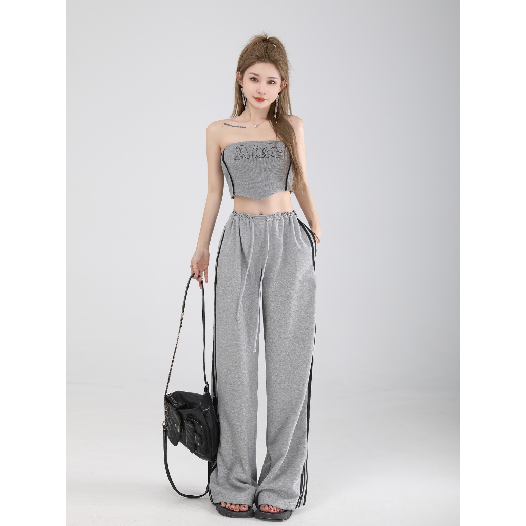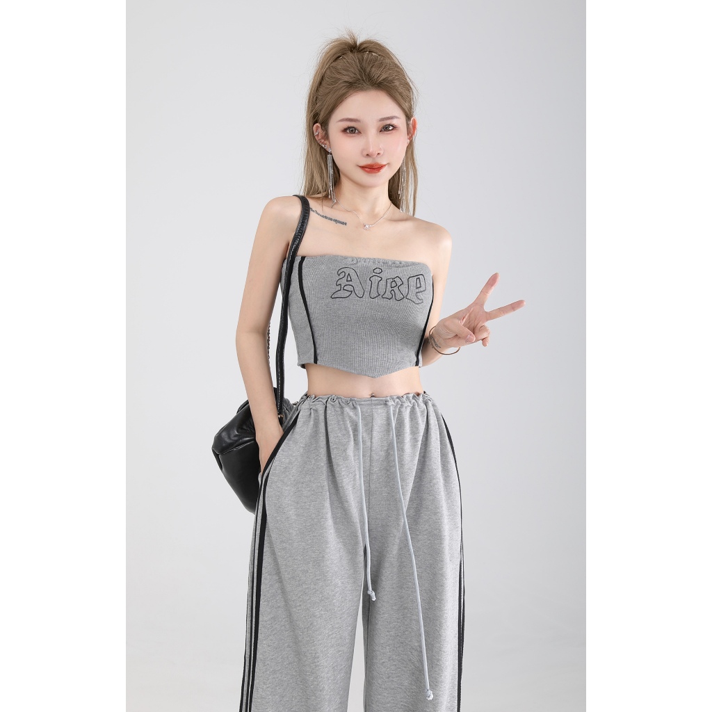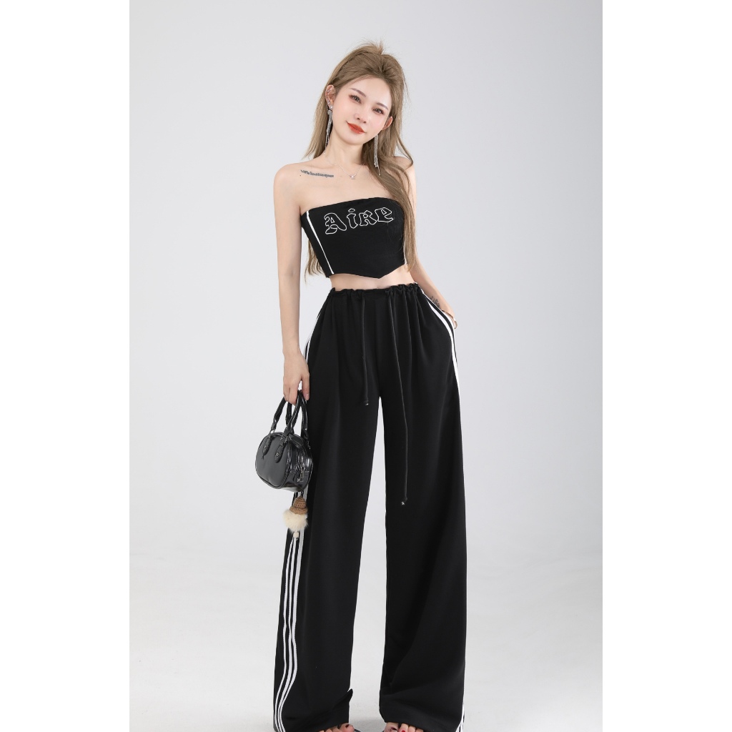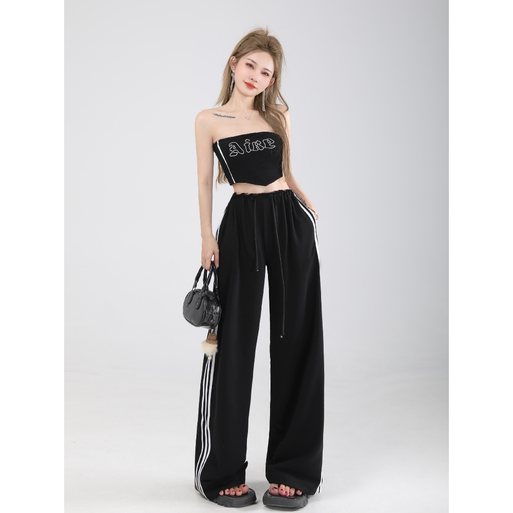 【READY STOCK】 CherryShop⭐Fashion suit tube top vest plus wide-leg trousers temperament two-piece suit