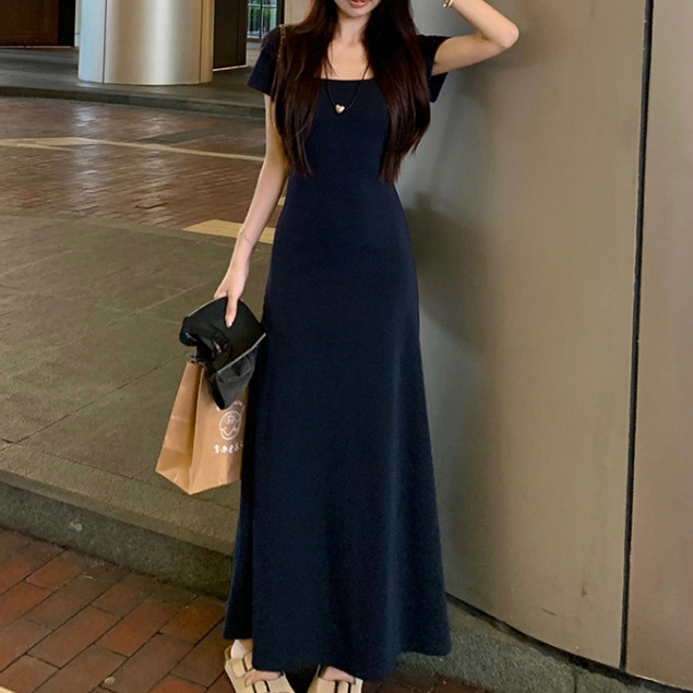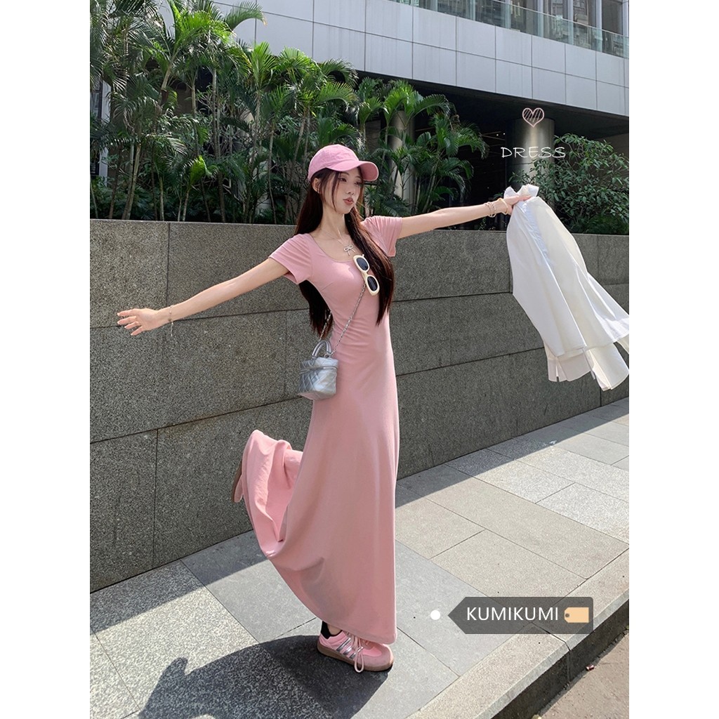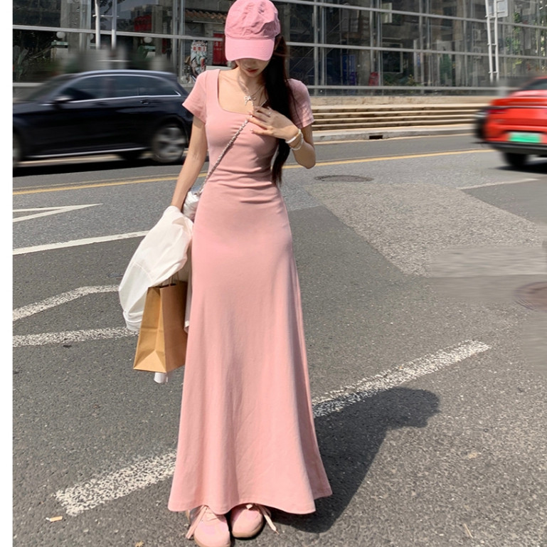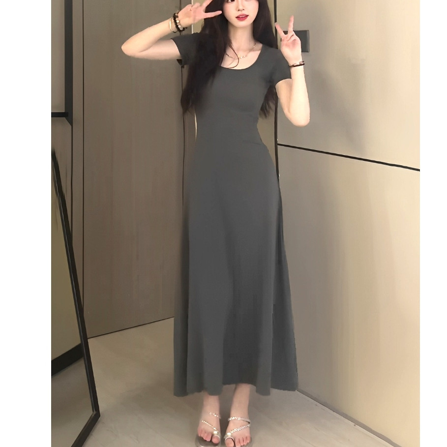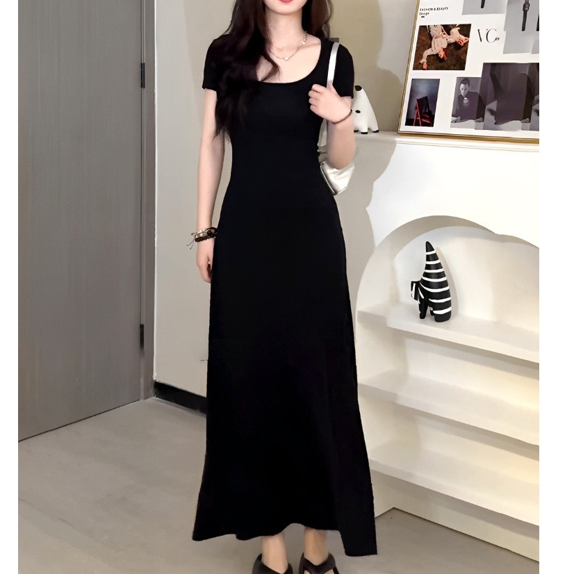 【READY STOCK】 CherryShop⭐French dress solid color tight temperament elegant long dress with sleeves