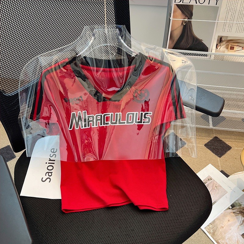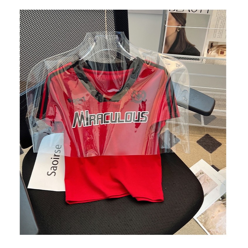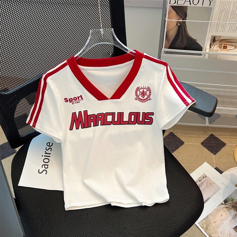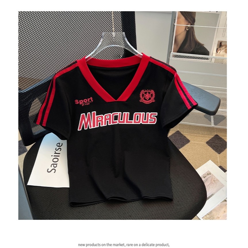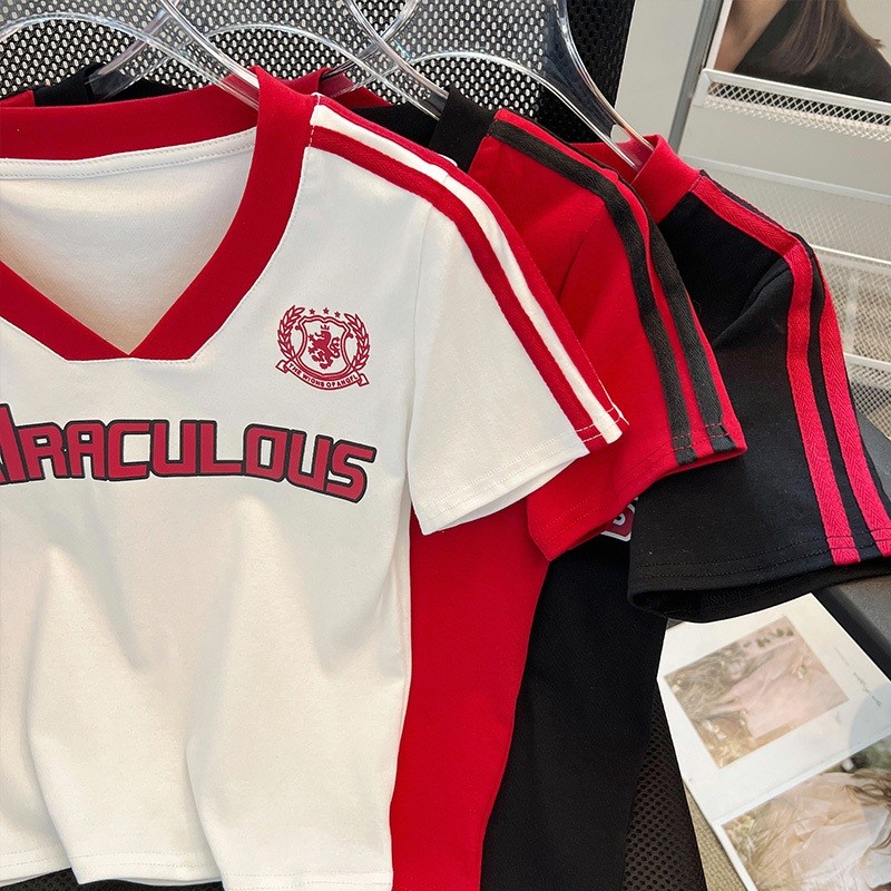 【READY STOCK】 CherryShop⭐V-neck casual short-sleeved T-shirt women's short top with letter print