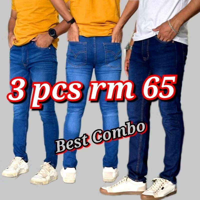 [Ready Stock] Combo 3pcs (Size 28-40) Skinny/Silimfit Jeans pants For Men & unisex Material] harga murah ya 3pcs Rm52.99