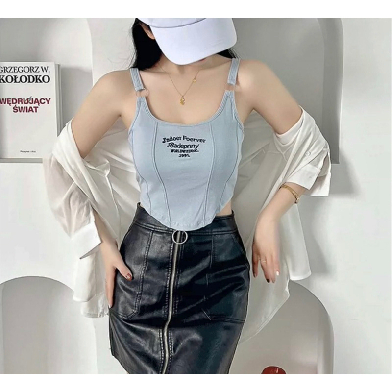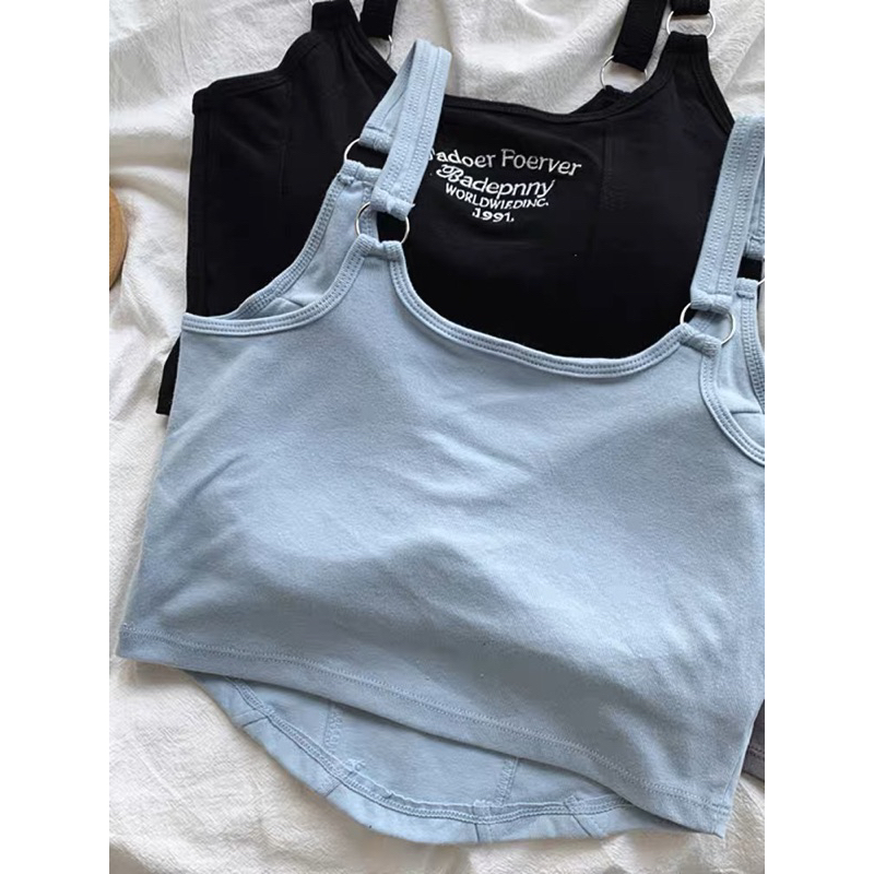 【Ready Stock】French Camisole Women's Chest Pad Inner Design Sense Outer Wear Short Sexy Tube Top Top