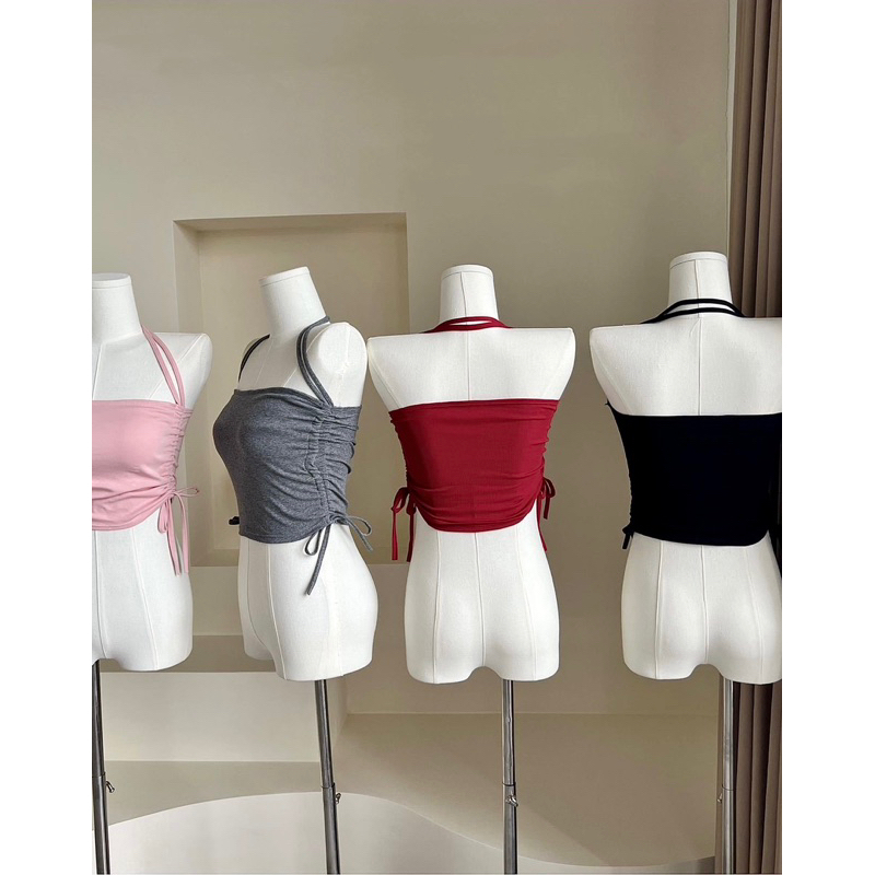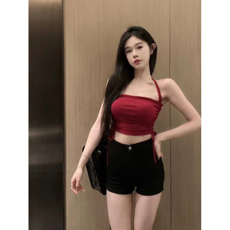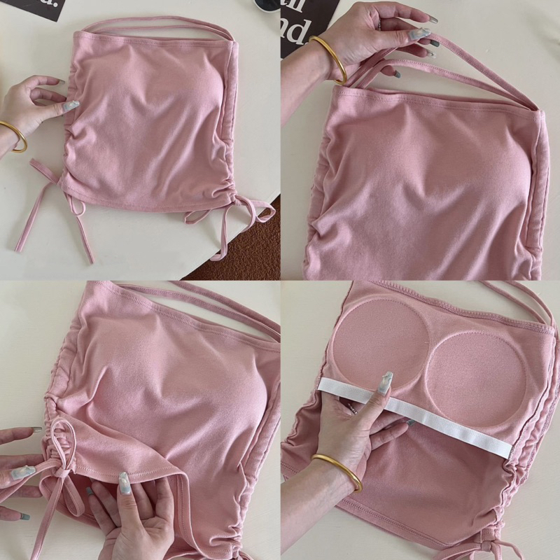 【Ready Stock】Halter-neck strap design camisole hot girl tube top with breast pad backless women's inner wear outer top