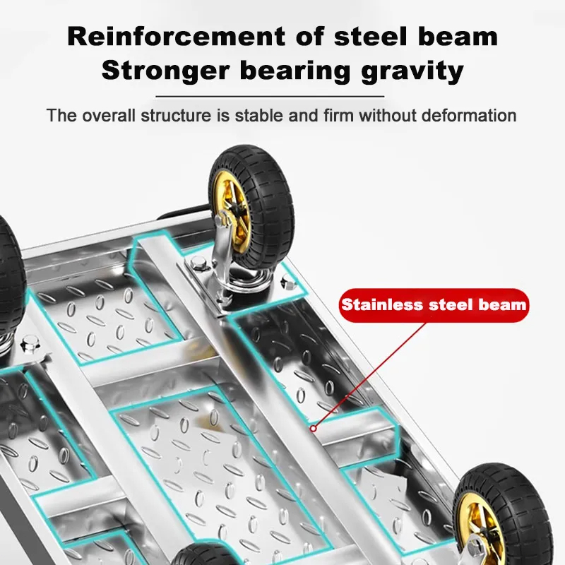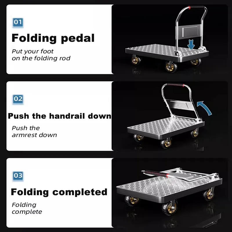 【Ready Stock】Heavy duty silent wheeled trolley Troli Letak Barang Foldable iron handle, 360° rotating wheels 手推车