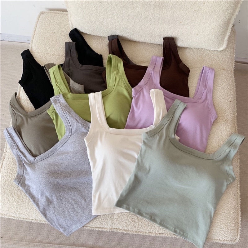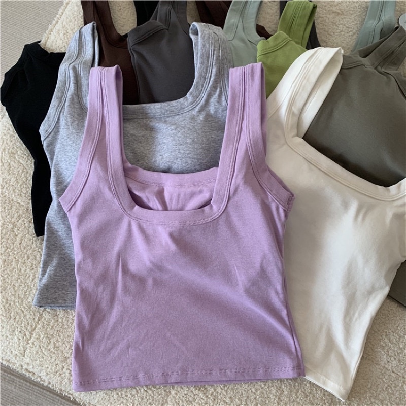 (READY STOCK IN MALAYSIA) Diana Plain Cotton Square Neck Padded Singlet Top 纯色纯棉方领带胸垫吊带背心上