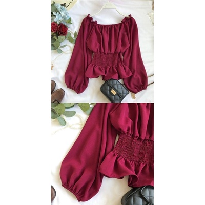 Ready Stock In Malaysia korean style women ladies chiffon blouse puff blouse baju baju wanita lengan panjang