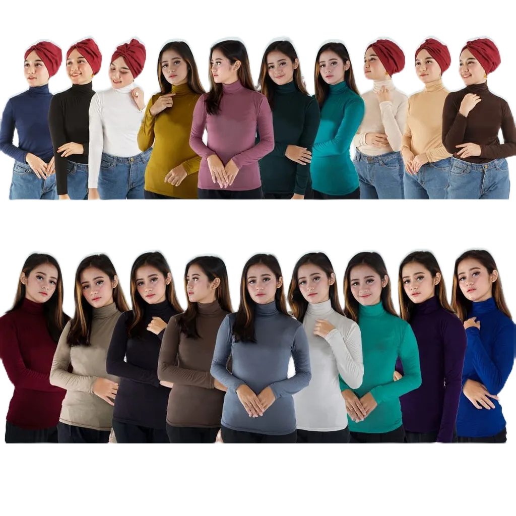 Ready Stock Inner Turtel Neck Long Sleeve Women Fashion Lehar Cover Kain Viscose Cotton