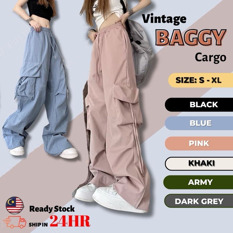 ✅Ready Stock?? Korean Atyle Kasual Seluar Kargo Perempuan Casual Women Cargo Pants Women wide leg cargo baggy loose