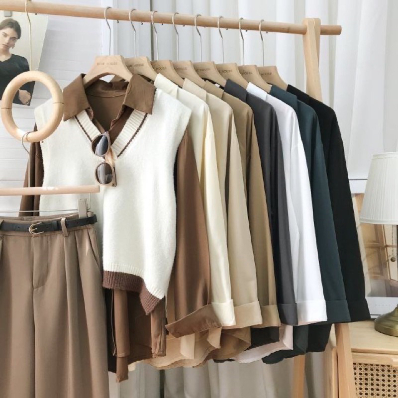 Ready Stock Korean Style Women Ladies Loose Long Sleeve Shirt Blouse Baju Baju Wanita Lengan Panjang