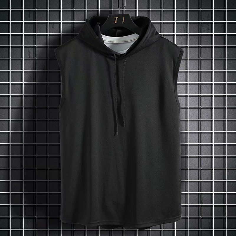 ?READY STOCK? Korean Vest Men Trend Sport Vest Tactical Vest Hooded Loose Sleeveless T-shirt Men T12