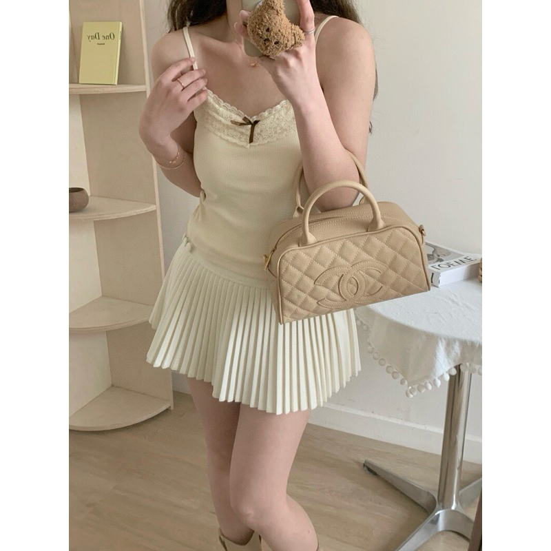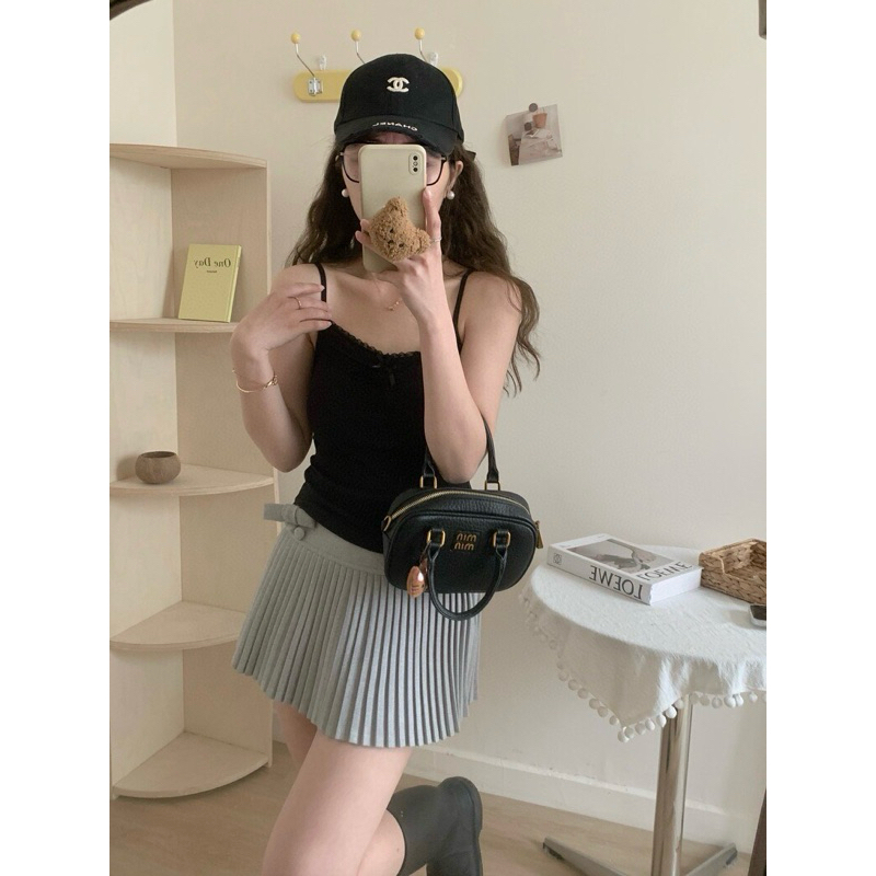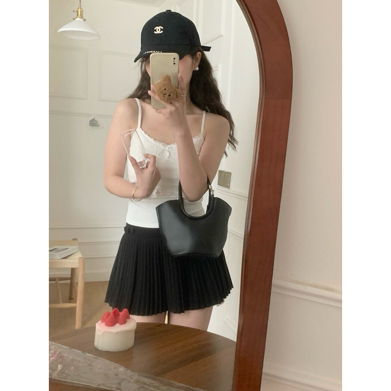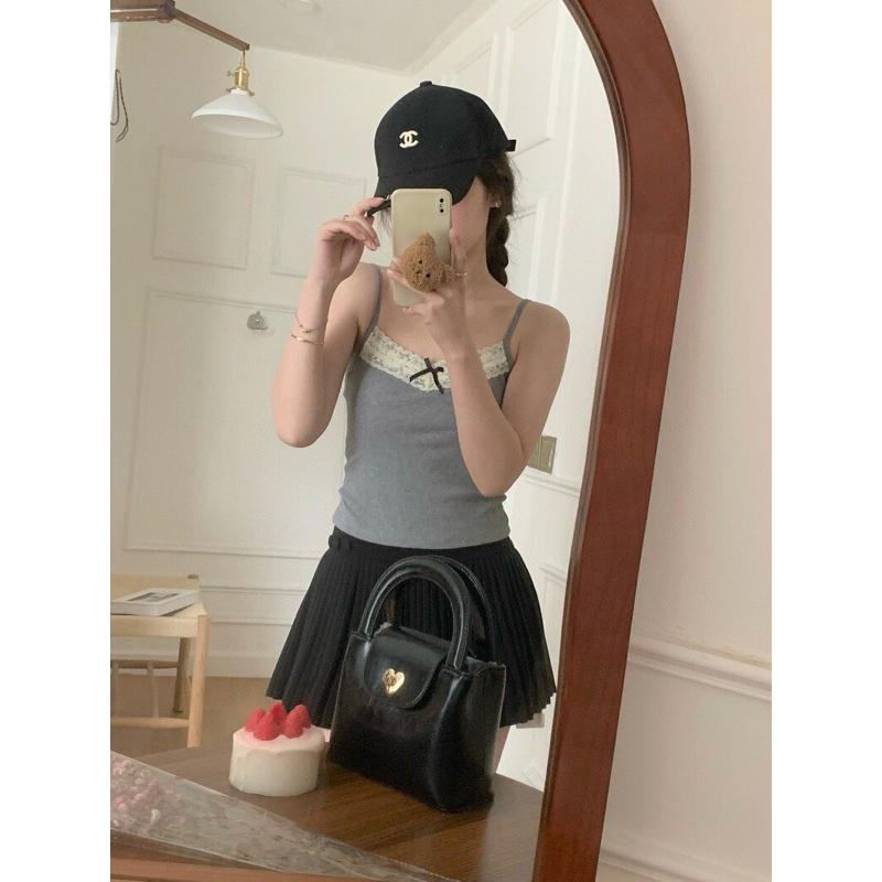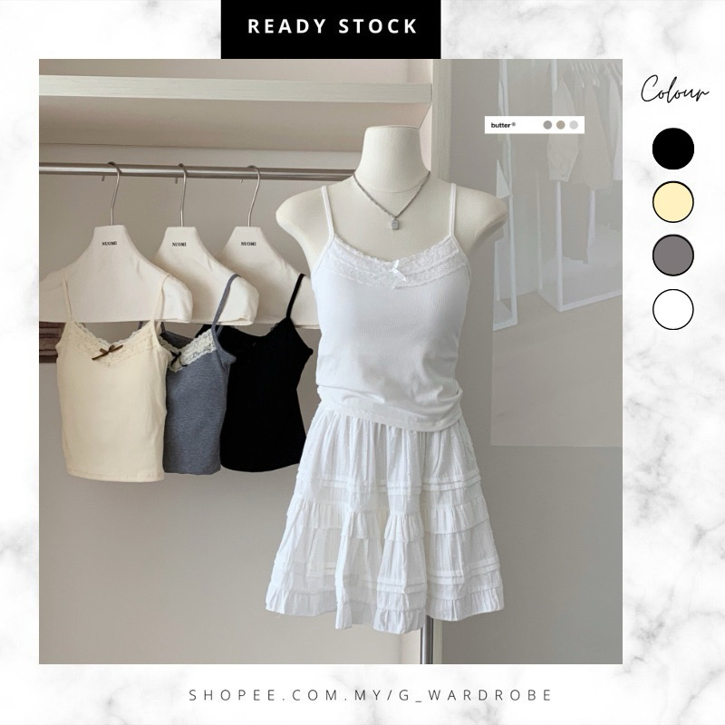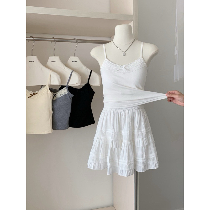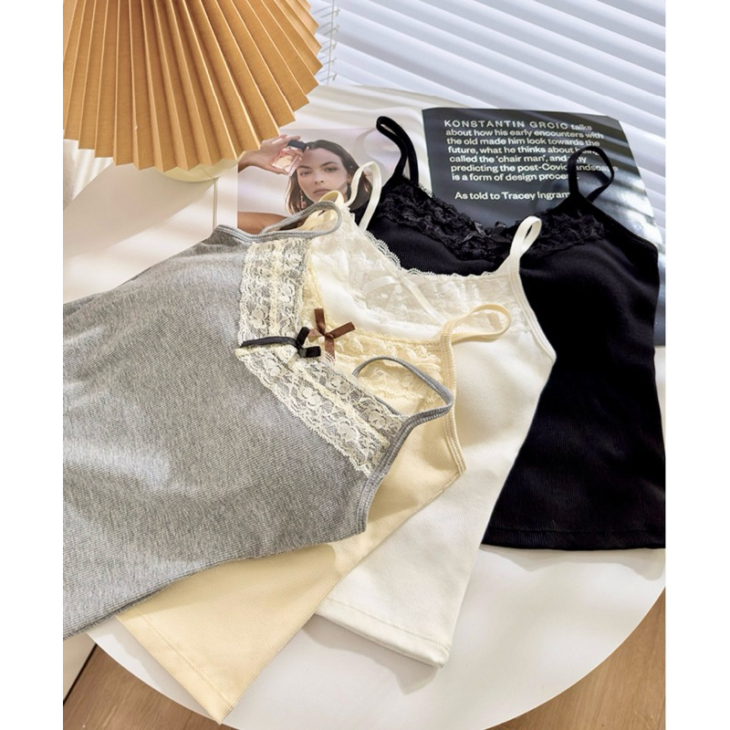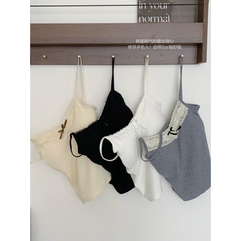 【Ready Stock】Lace bow camisole with breast pads for sweet girls sexy bottoming tops for women