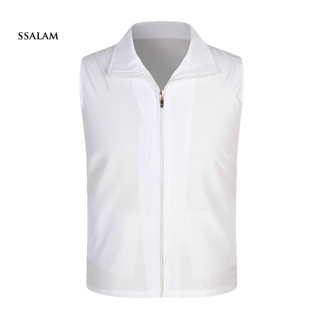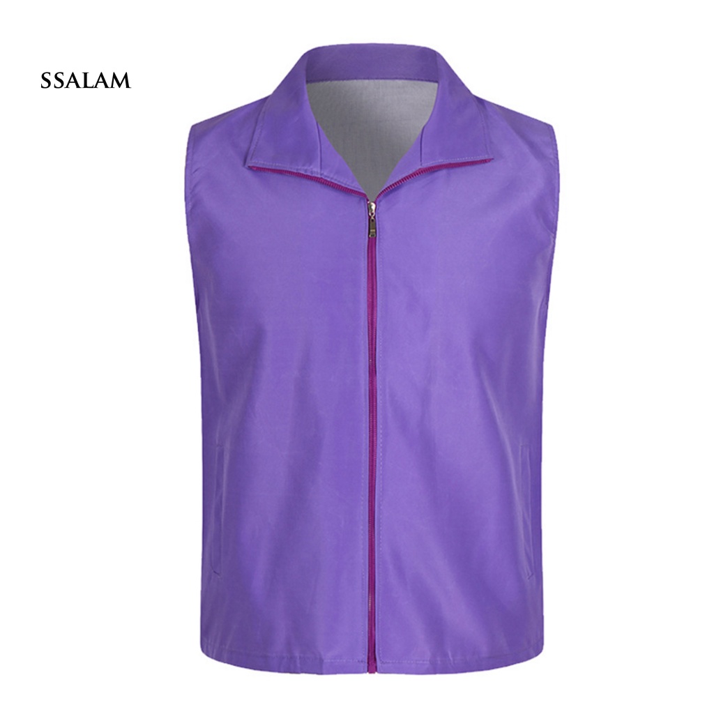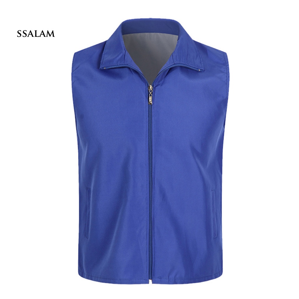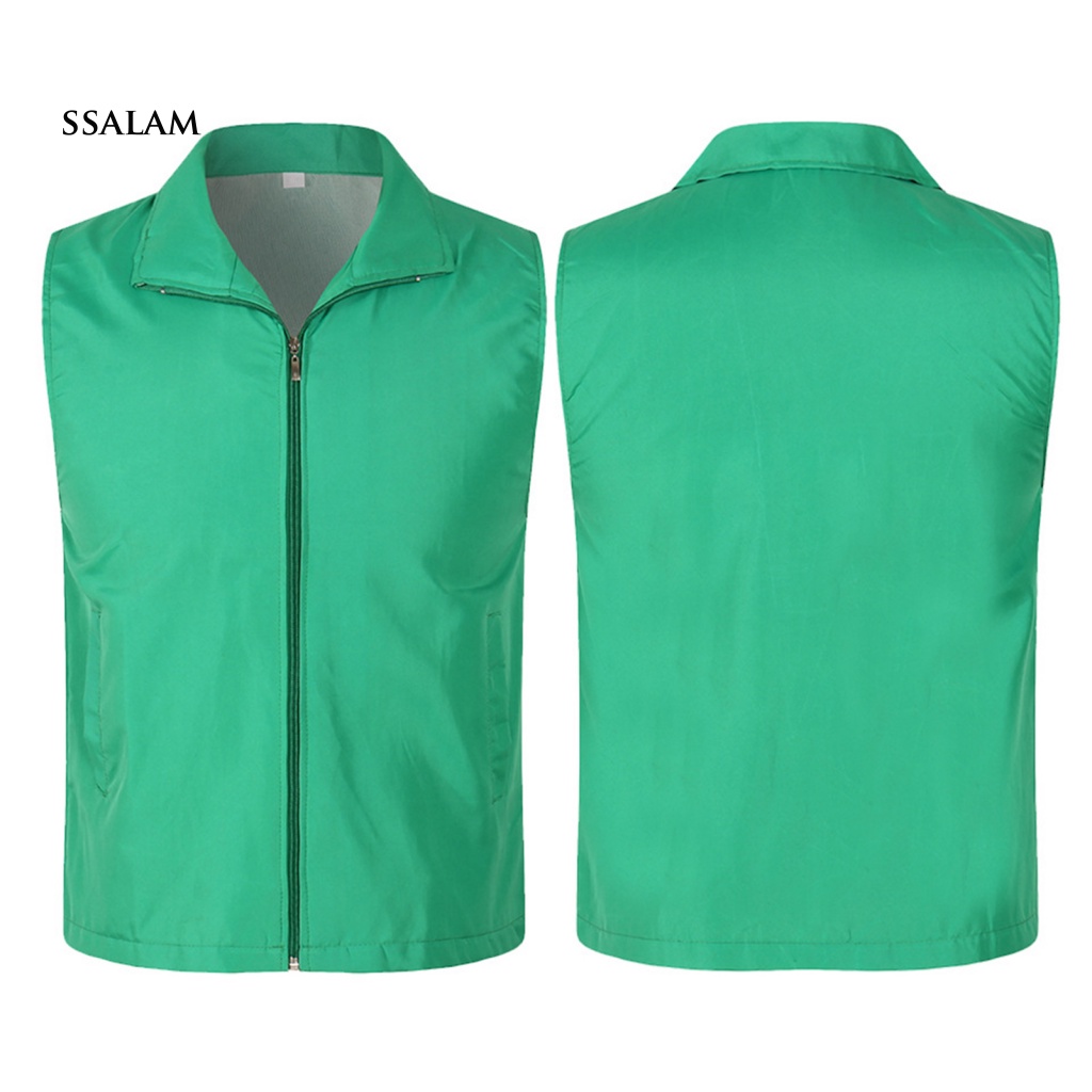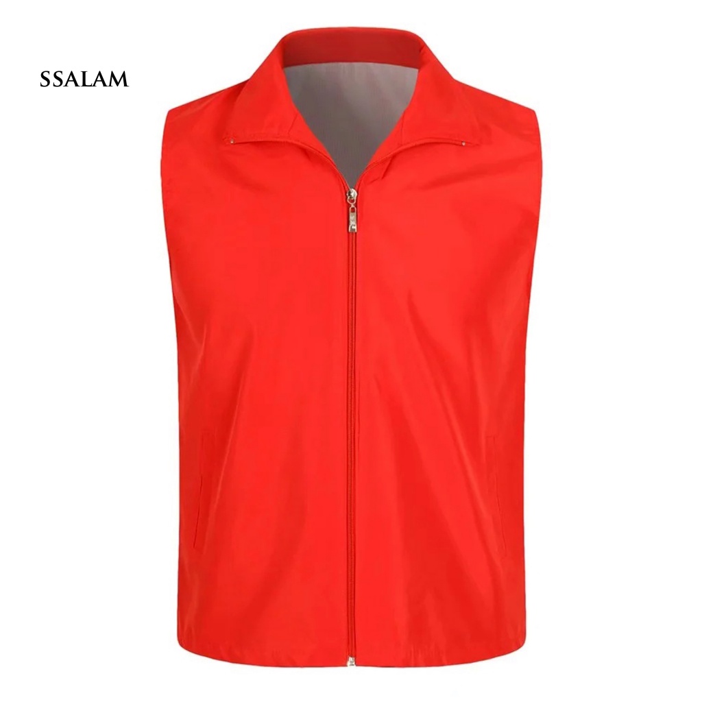 【Ready Stock] Lapel Sleeveless Pockets Zipper Placket Mesh Lining Outdoor Vest Volunteer Bright Color Slim Fit Work Waistcoat