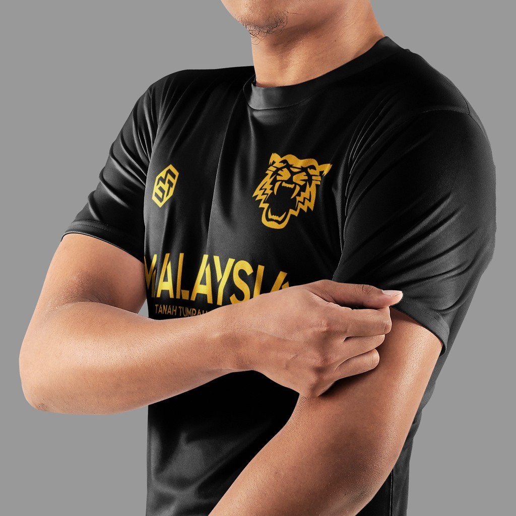 [READY STOCK] Malaysia ''Harimau Malaya" Jersey Black/Gold - Jersi Roundneck
