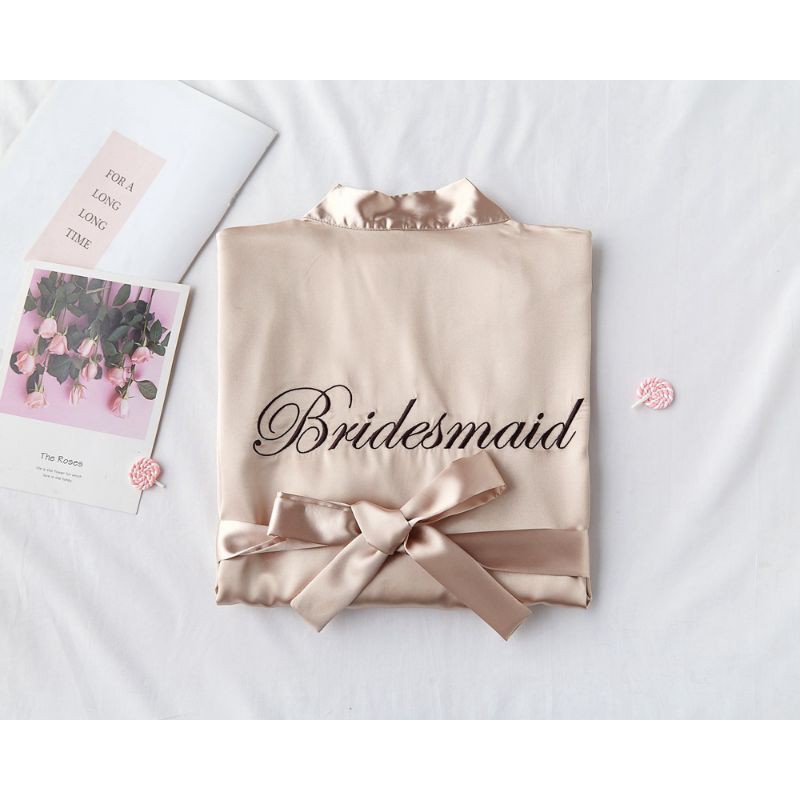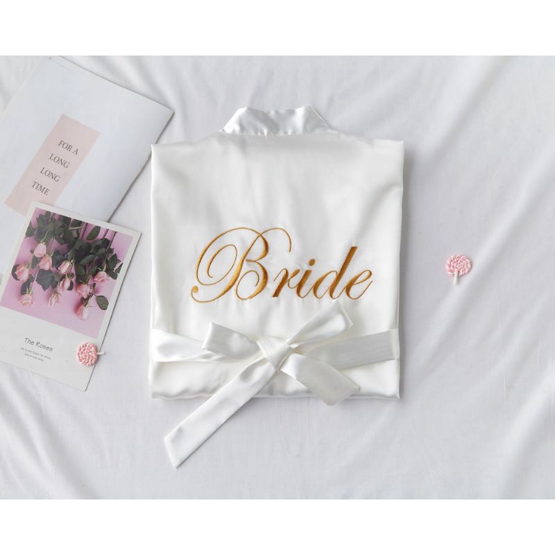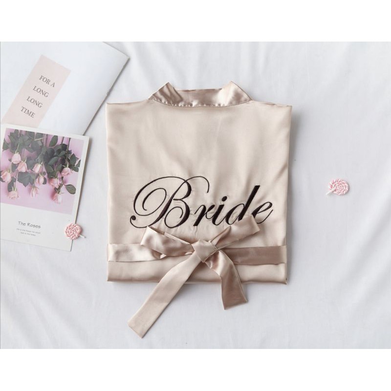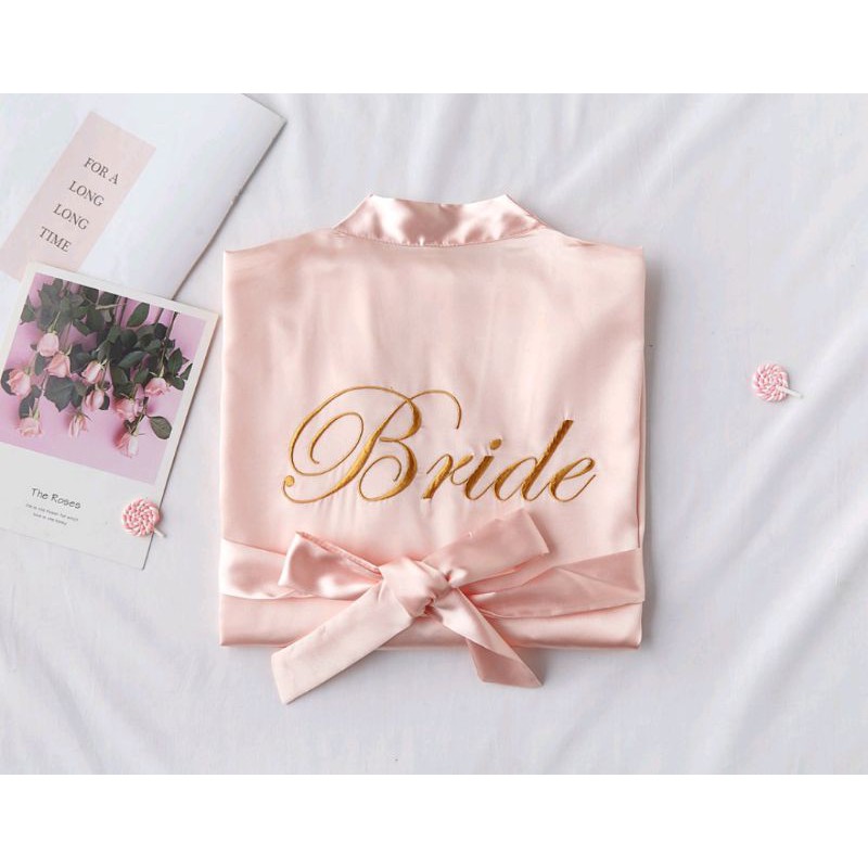 READY STOCK Malaysia Ice Silk Satin Wedding Bride and Bridesmaid Robe Pyjamas Nightwear Size S-XXL