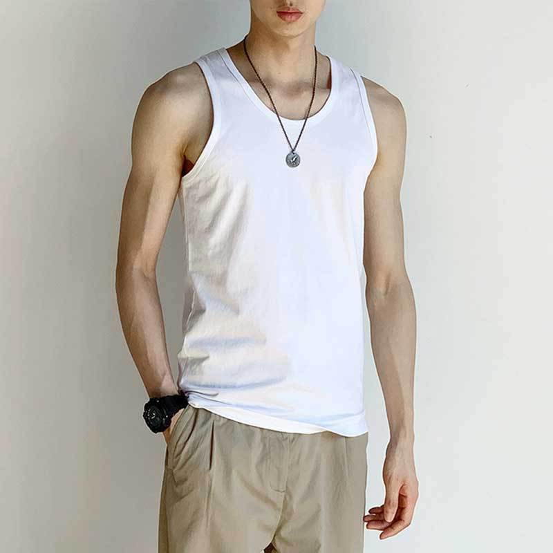 [Ready Stock]Men Inner Tank Shirt Seamless Cooling Silk Singlet Casual Plain Top Plus Size Breathable Elastic Sport Top