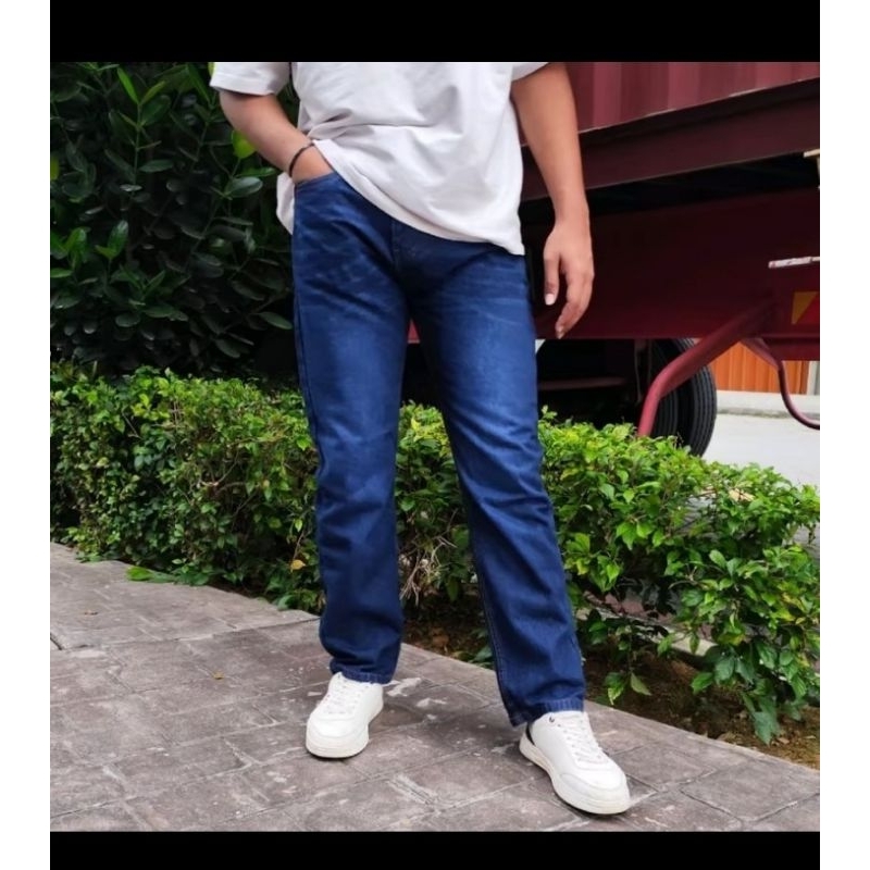 Ready stock ? Men's Straight cut Denim Long Jeans Pants #LOOSE FITTING ZIP FLY 28-46. Not stretchable.