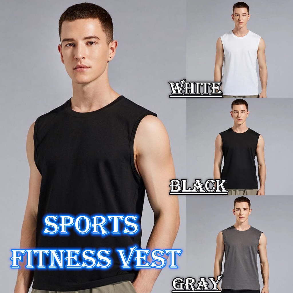 【Ready stock】 Men SPORTS FITNESS VEST Singlet Casual Plain Tank Top Undershirt Sleeveless Inner Slim Gym Casual