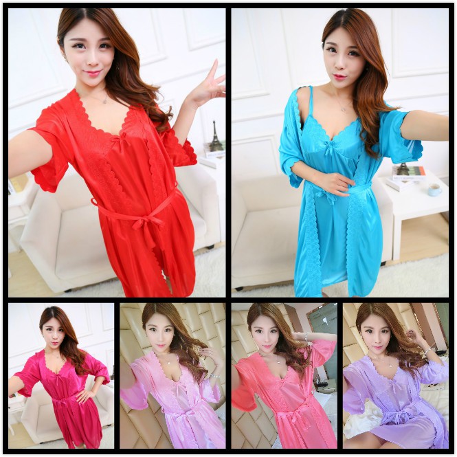 Ready Stock New Arrival Plus Size Rose Set Suit Satin Nightdress