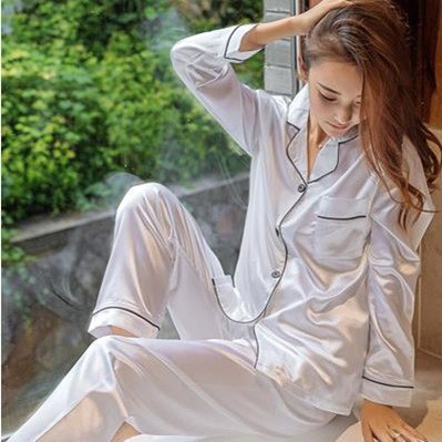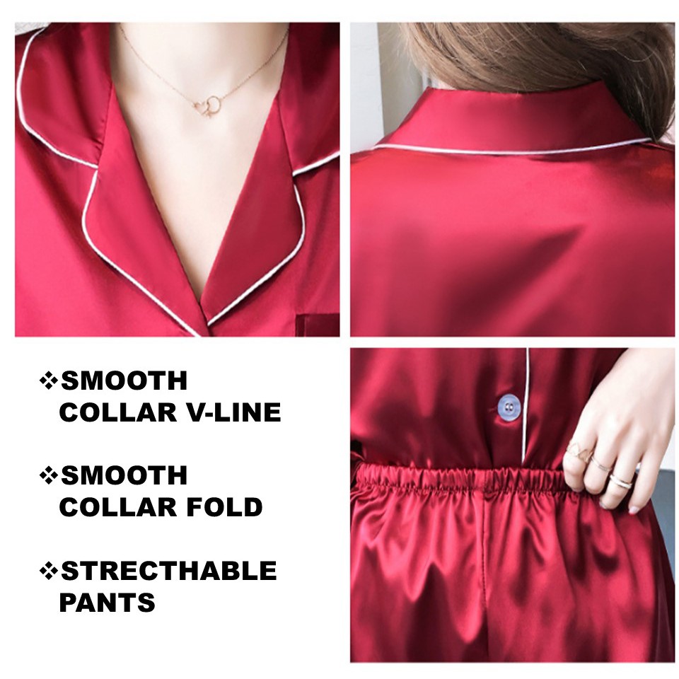 [READY STOCK] NEW BATCH IN [SIZE L - 5XL] Long Sleeve Silk Pyjamas Plus Baju Tidur Wanita Satin Sleepwear Saiz Besar