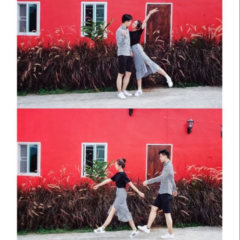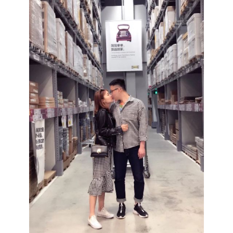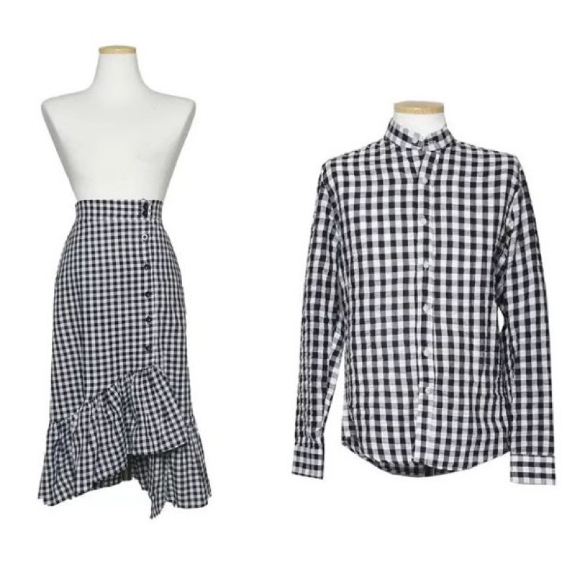 Ready stock ?OOTD Dating Set情侣装同色系列Couple Wear情侣套装=格子衬衫+半身裙100% cotton Plus Size Long Sleeve Blouse