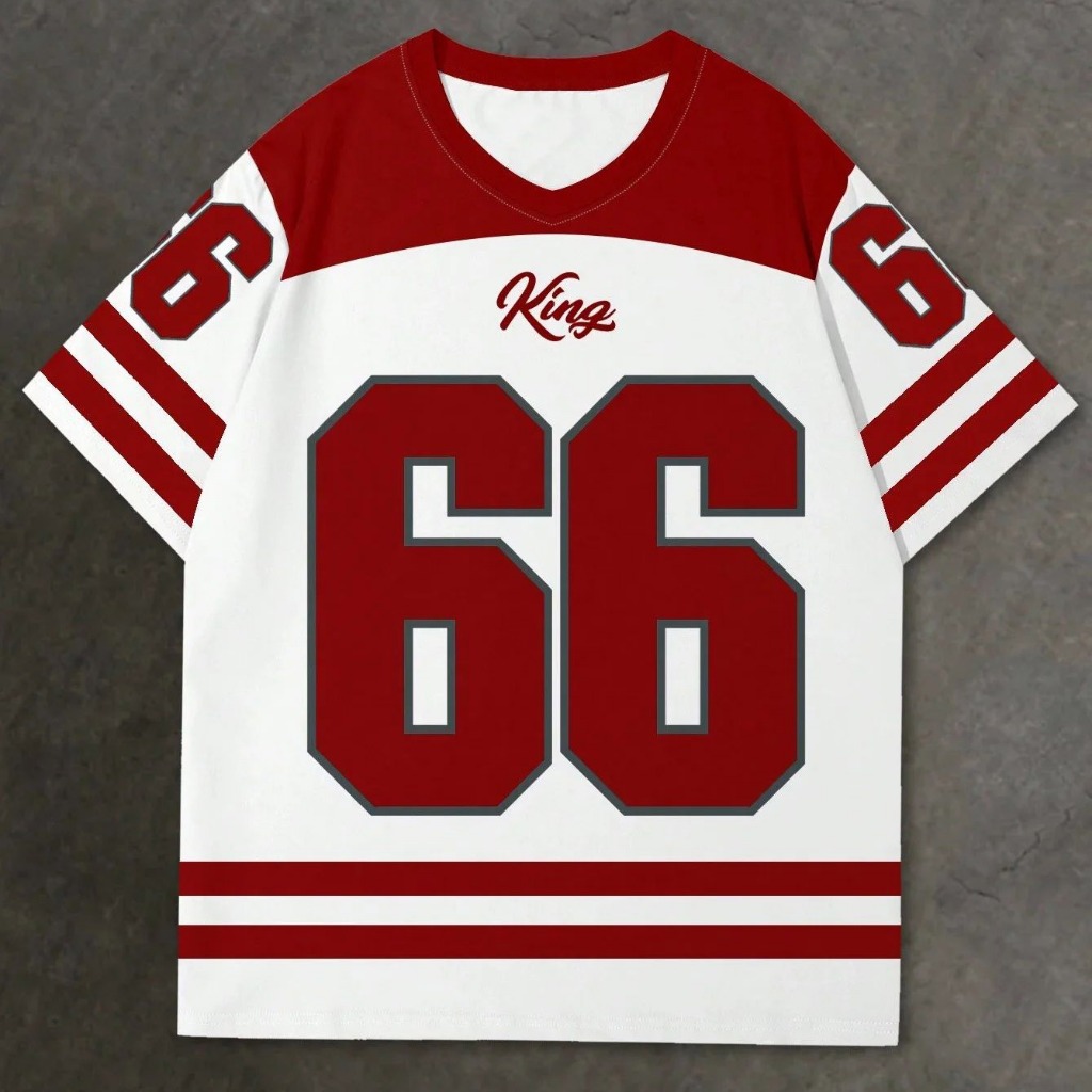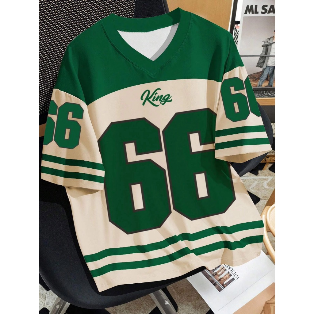 【READY STOCK】ProMan baju lelaki t shirt Jersi Sukan Lengan Pendek Gaya Jalanan Untuk Lelaki dan Wanita Longgar Cetakan Nombor Colorblock Short Sleeve streetwear T-Shirt