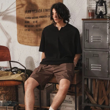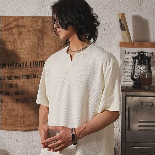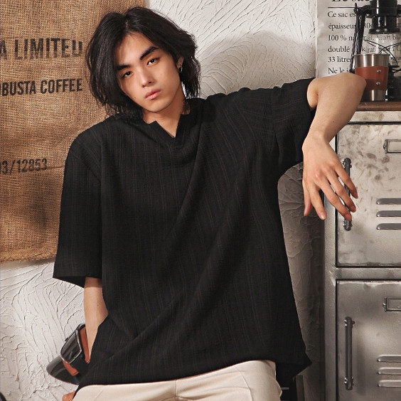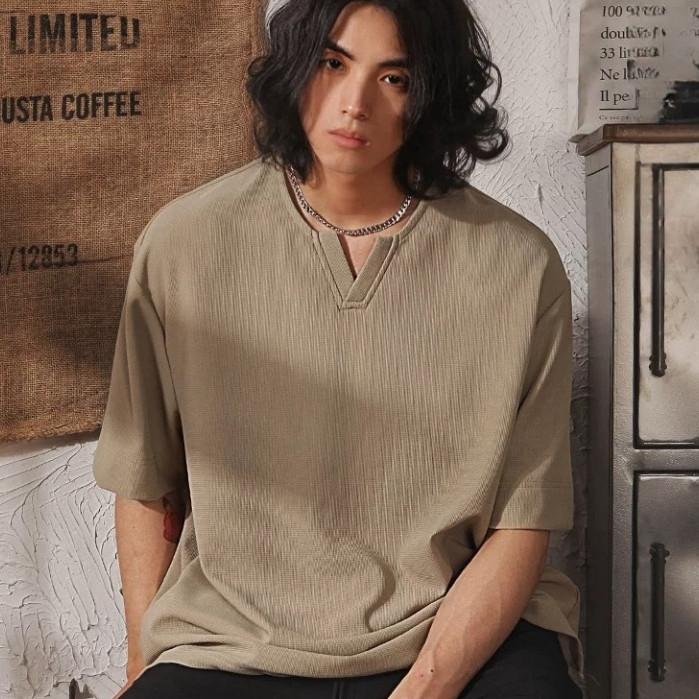 【READY STOCK】ProMan men plain waffle V-Neck Short Sleeve Simple baju t shirt lelaki berkolar hitam Lengan pendek basic