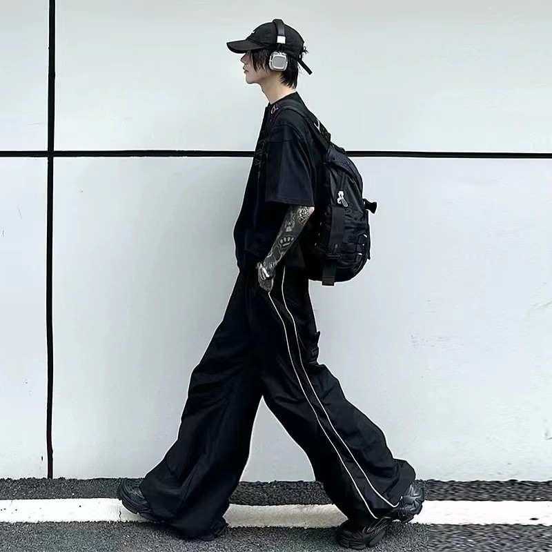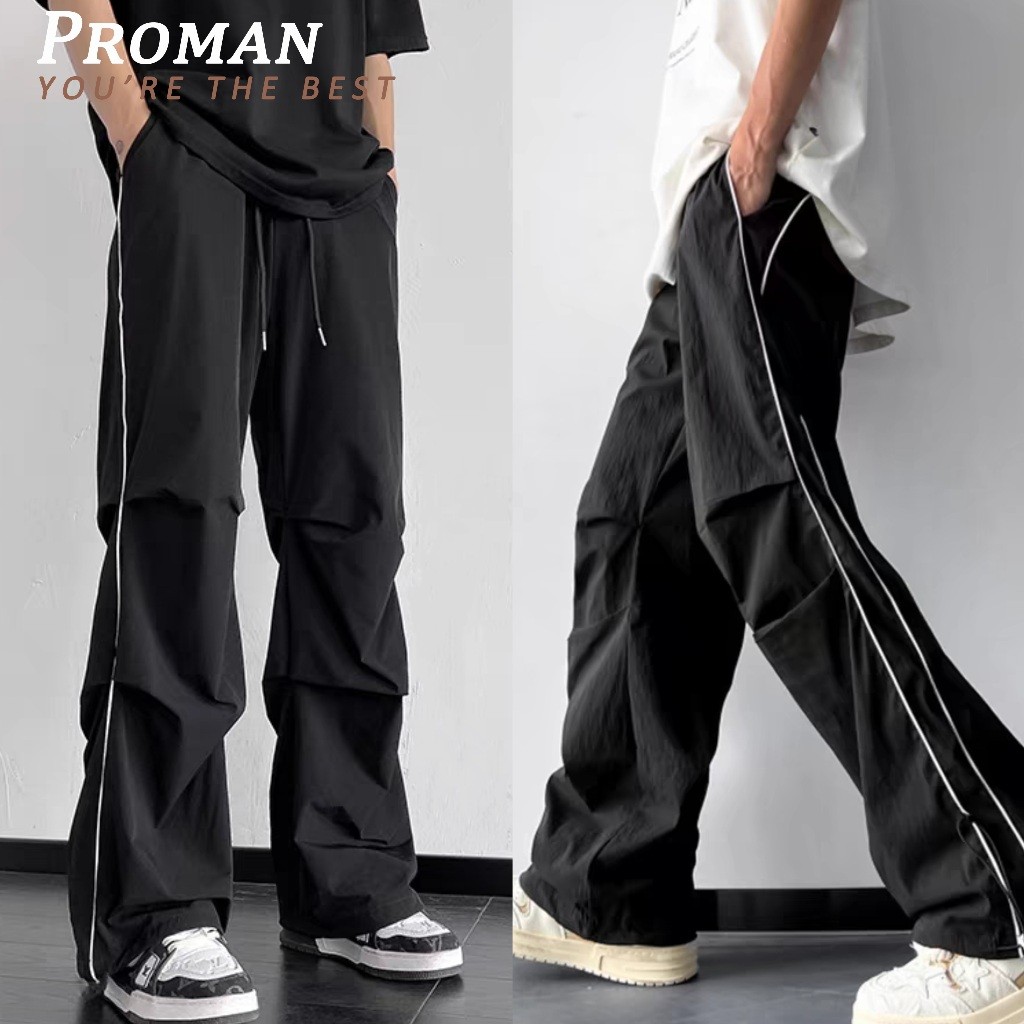【READY STOCK】ProMan seluar slack lelaki Men Casual Oversize Multi Pocket Retro Black Trousers Loose Sports baggy pants