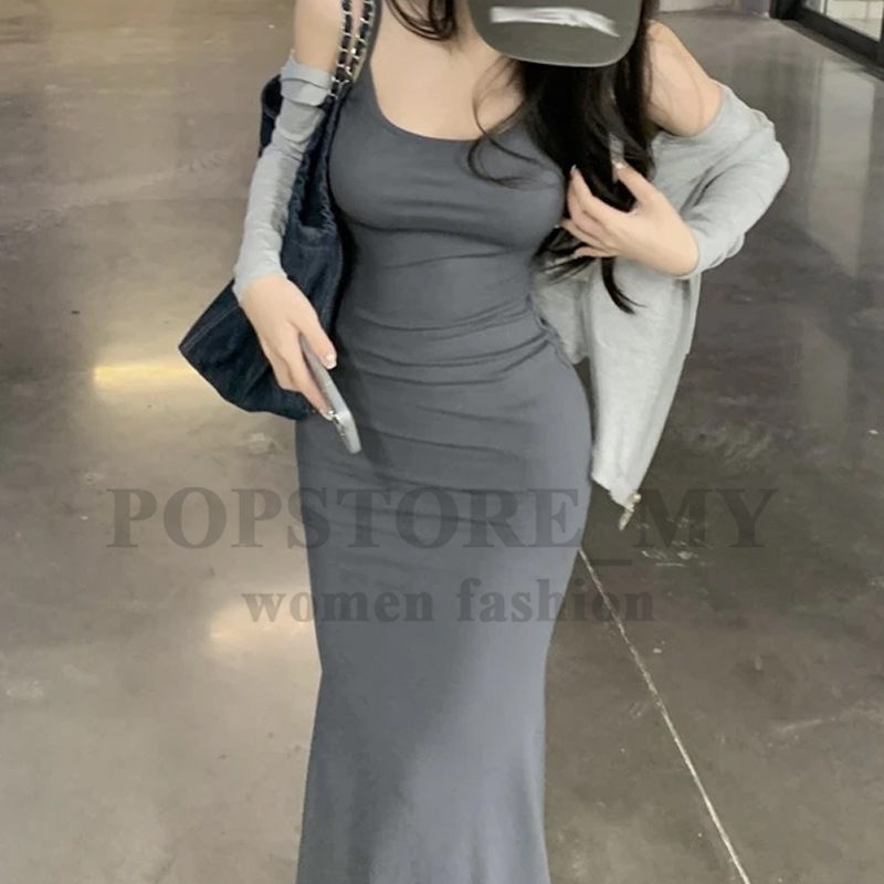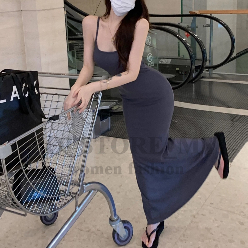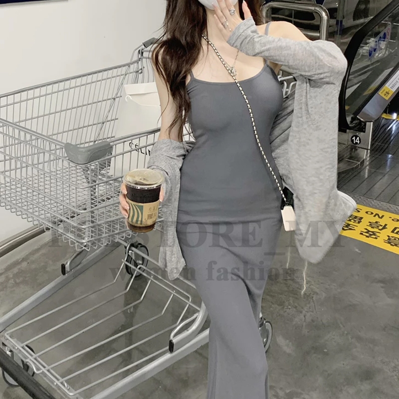 ?Ready Stock?S-XXL Women Bodycon Dress Sexy Sleeveless Suspender Dress Summer Sling Dress Plain Color tight Dress