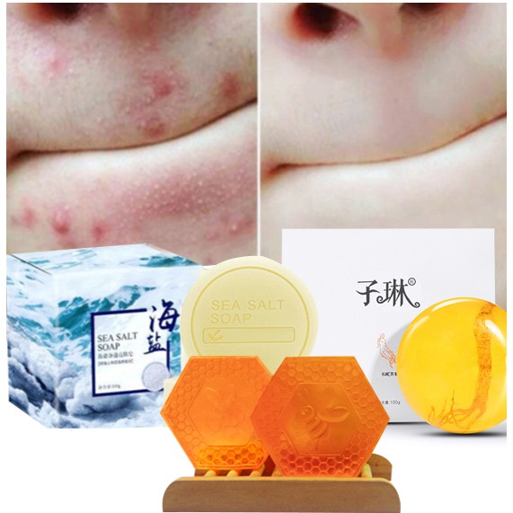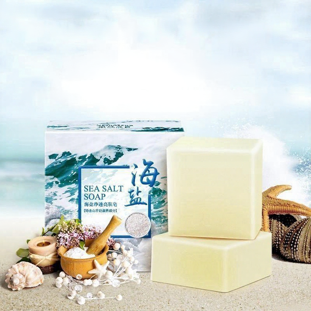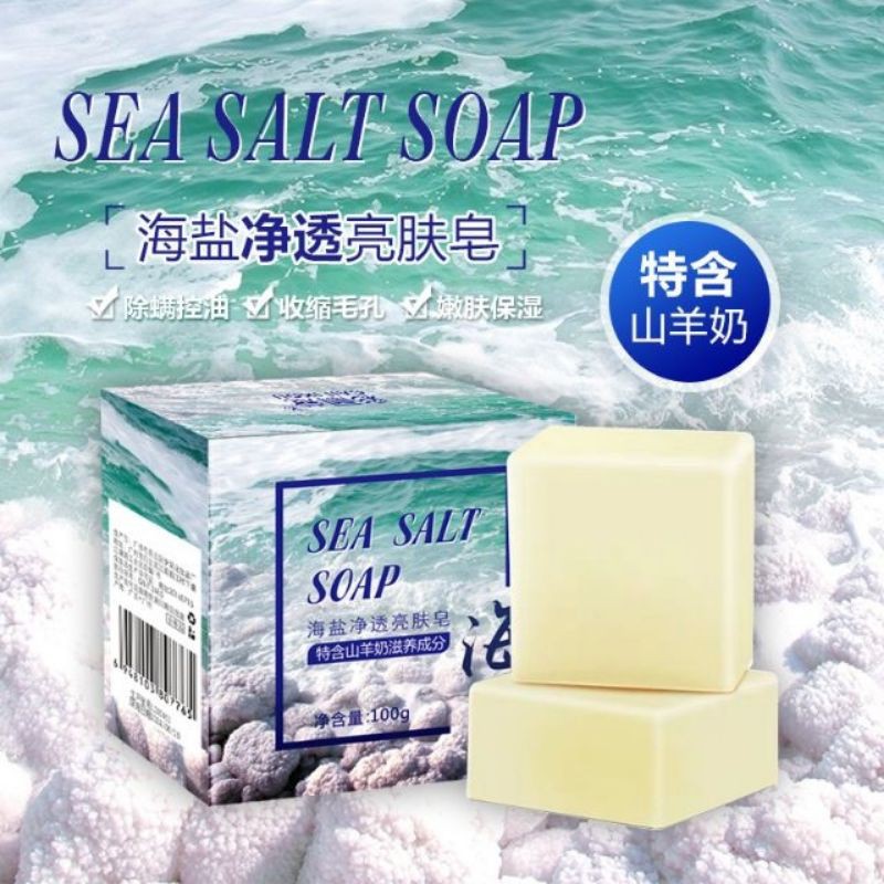 READY STOCK Sea Salt Soap Shrink Pores Whitening Blackhead Removal Face Wash Health ?Free Bubble Net