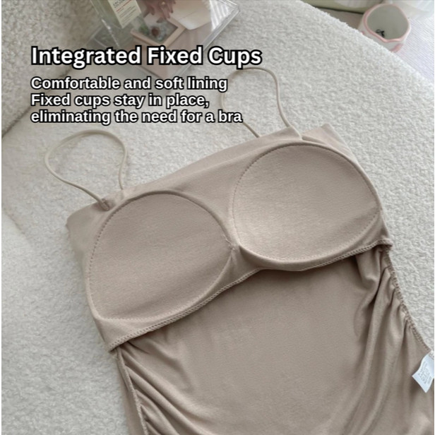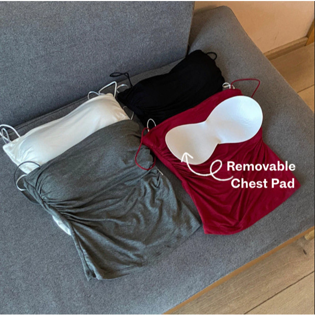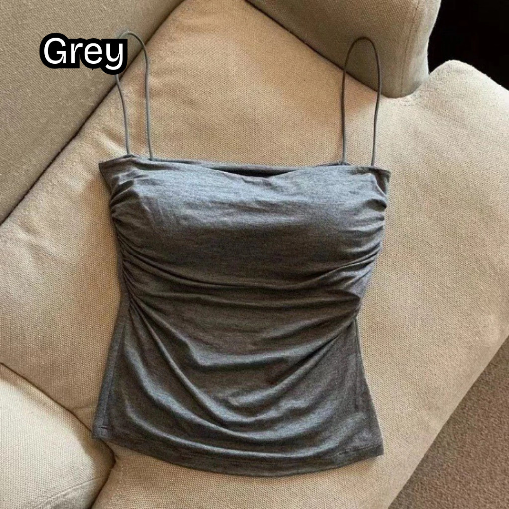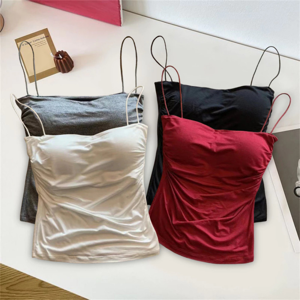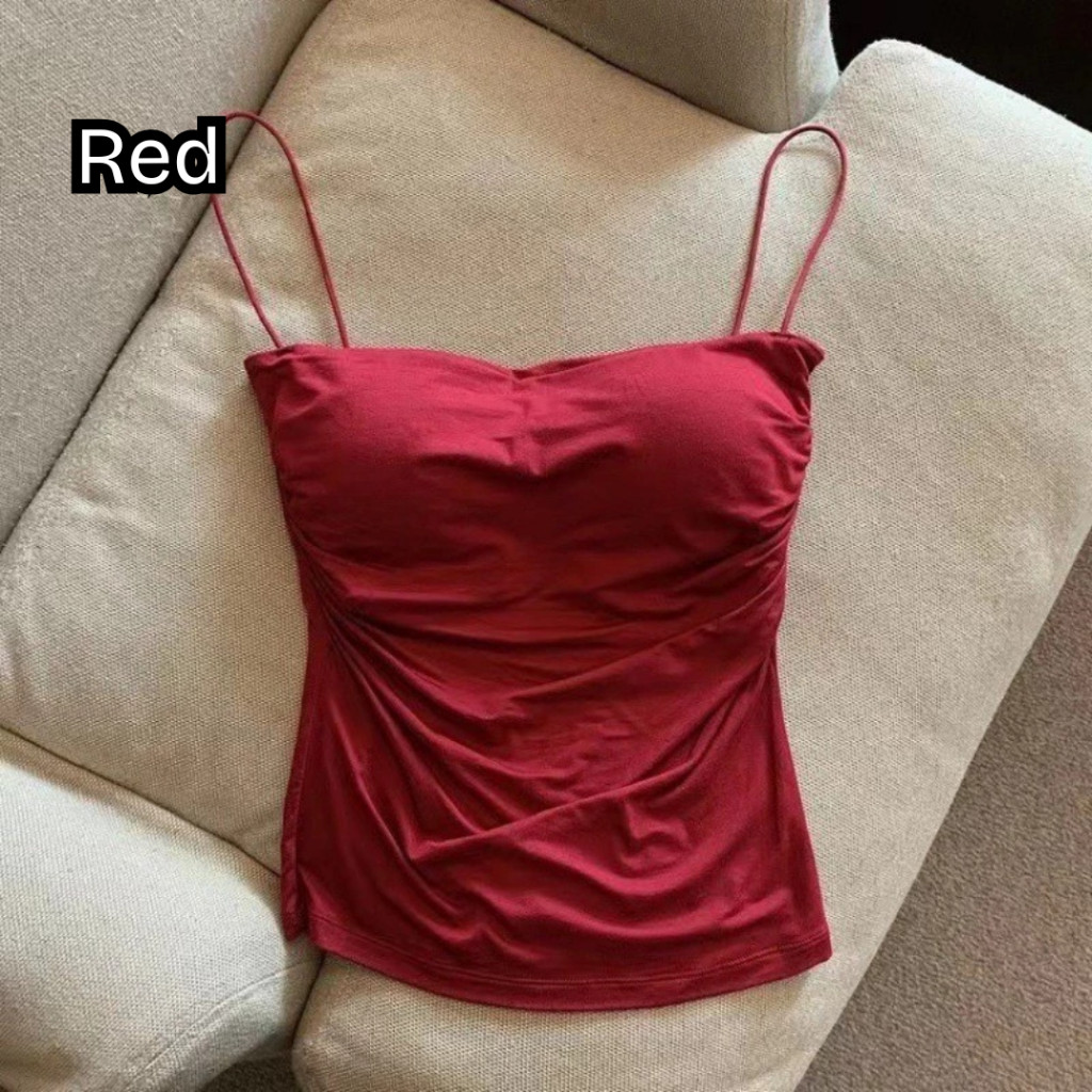 【Ready Stock】Solid color sexy backless waist slimming pleated camisole women's versatile inner top with breast pads