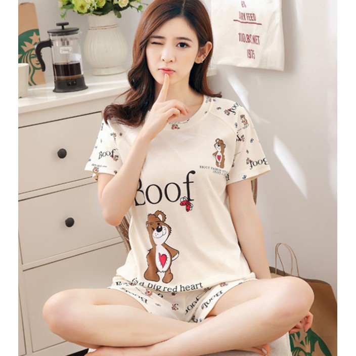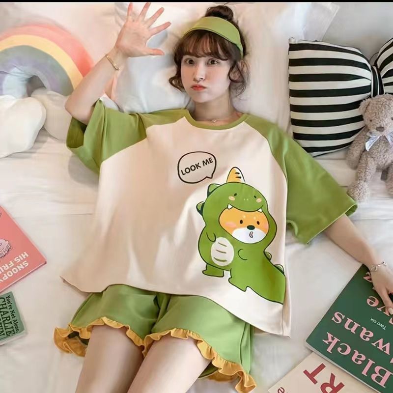 【READY STOCK】ST326-New M-2XL 9 Design Pajamas Set Lady Short Sleeve Cute Sleepwear Nightwear Baju Tidur Silk Licin