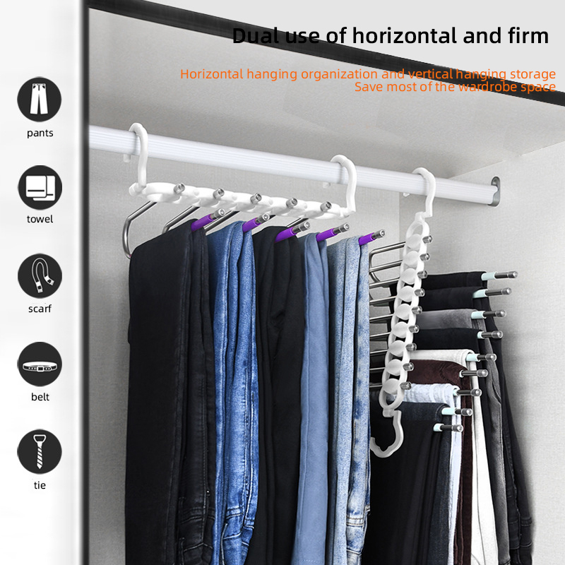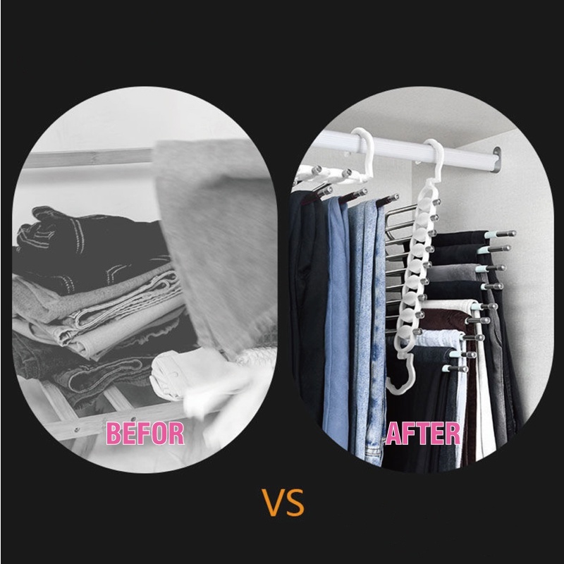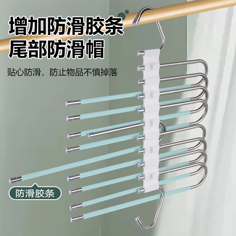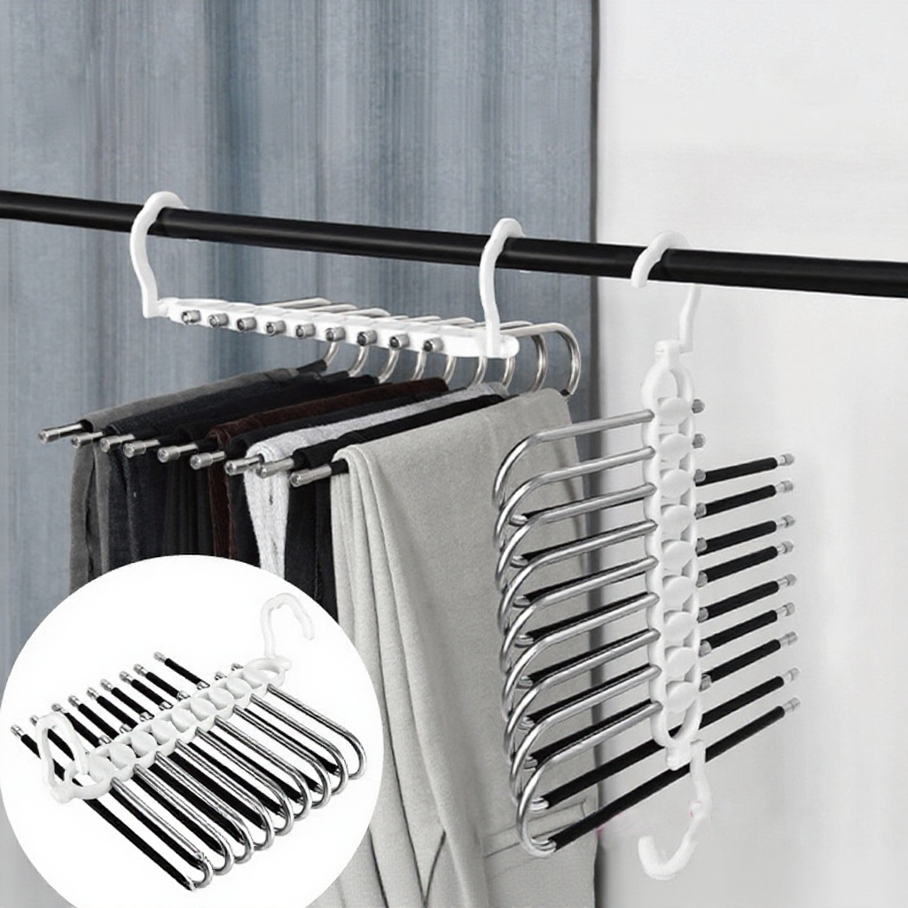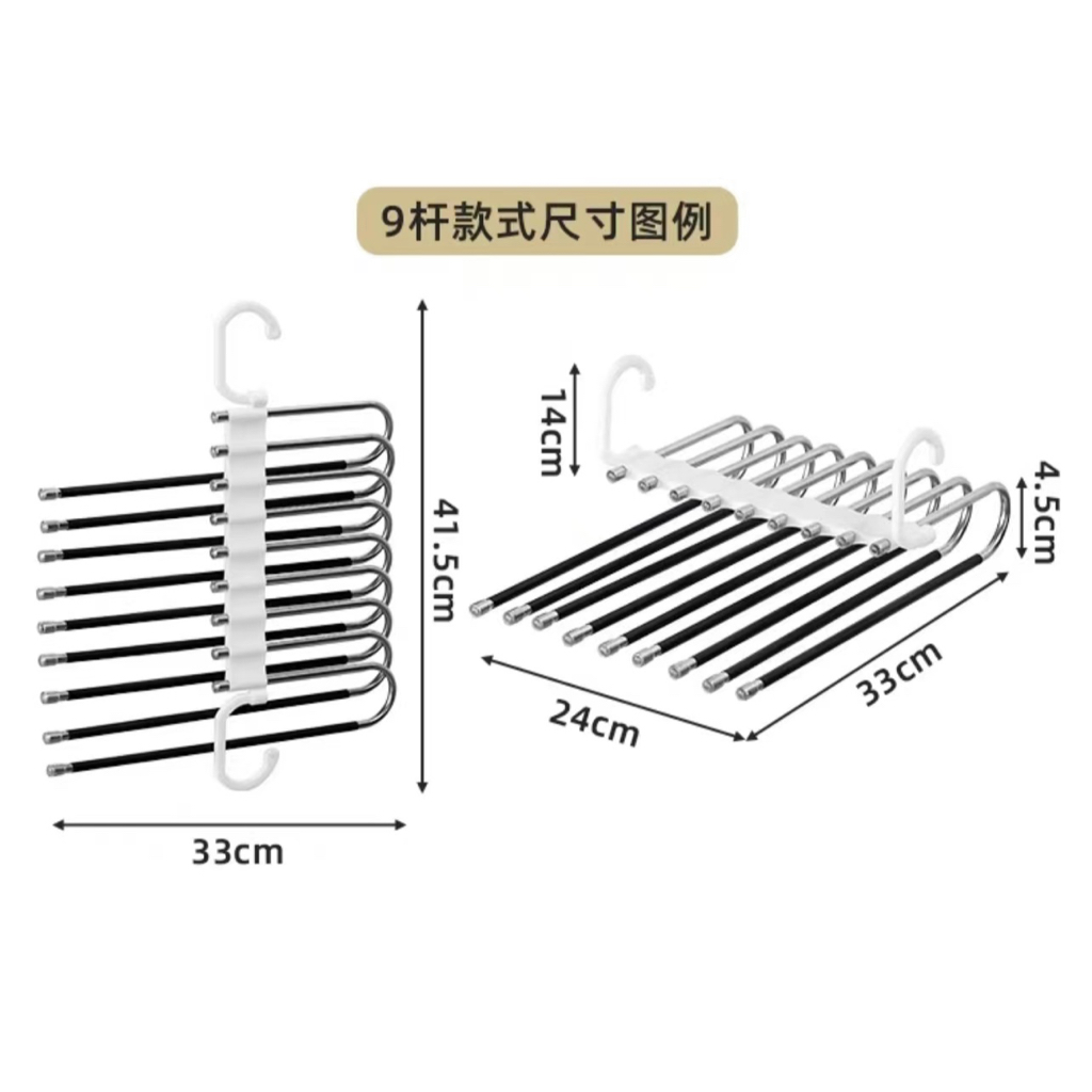 【READY STOCK】Stainless Steel Anti-Slip jeans Pant Hanger 5 / 9 Layer Magic hanger Multi Functional pants Rack Wardrobe Organizer Cloth