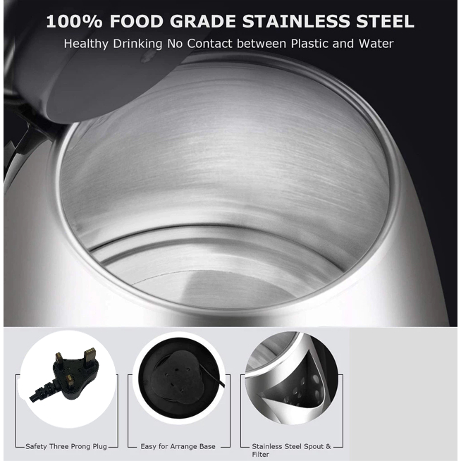 READY STOCK STAINLESS STEEL Electric Automatic Switch Jug Kettle Hot Water Heater Boiler (2L)