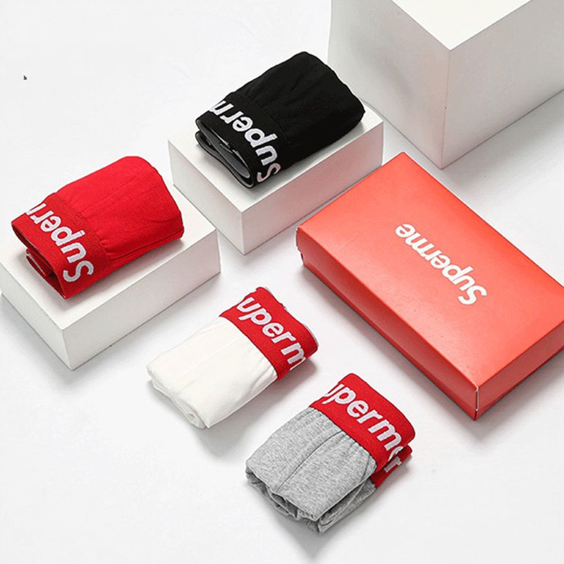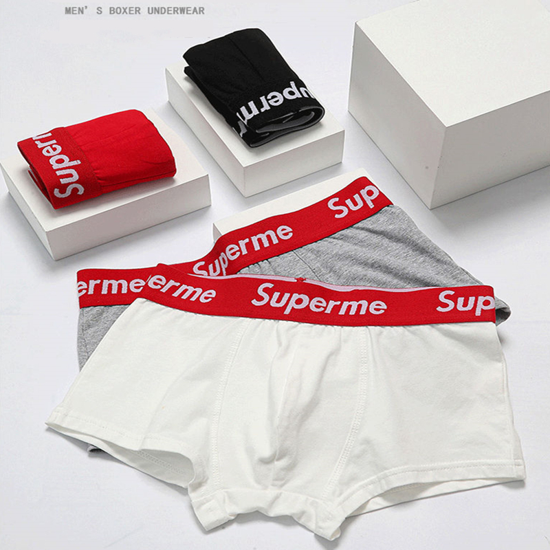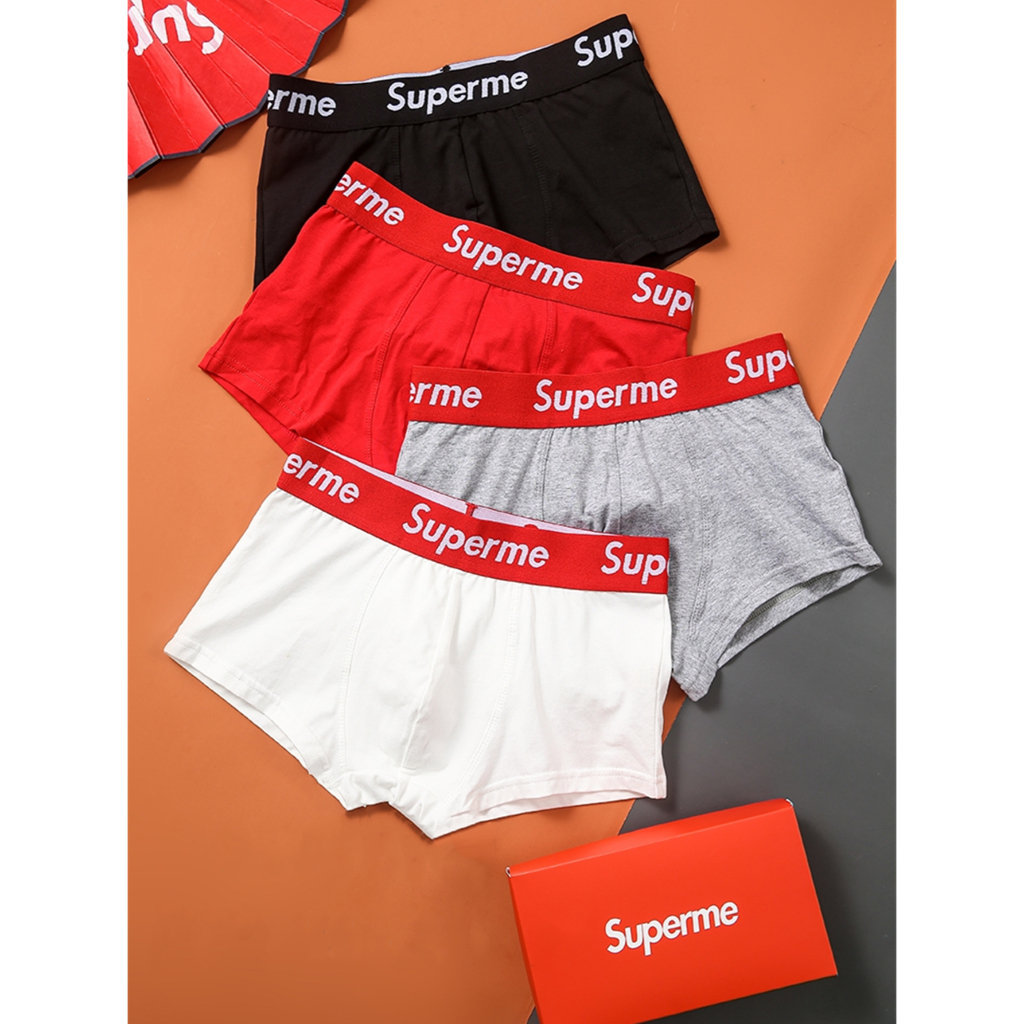 Ready Stock SUPERME Cotton Men Panties Letter Waist Big Elastic Briefs Comfort Underpants