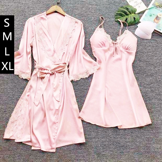 READY STOCK Two Pieces In One Set Robes Padded Sexy Lingerie Sleepwear Nightwear Pyjamas Baju Tidur S-XL PS031