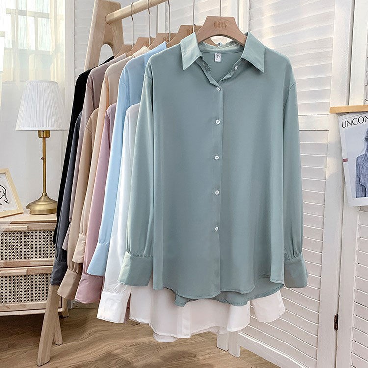 【Ready Stock】Women's 2023 Early Spring Loose Drape Casual Blouse Allmatch Top Women Blouse Elegant Temperament Net Shirt
