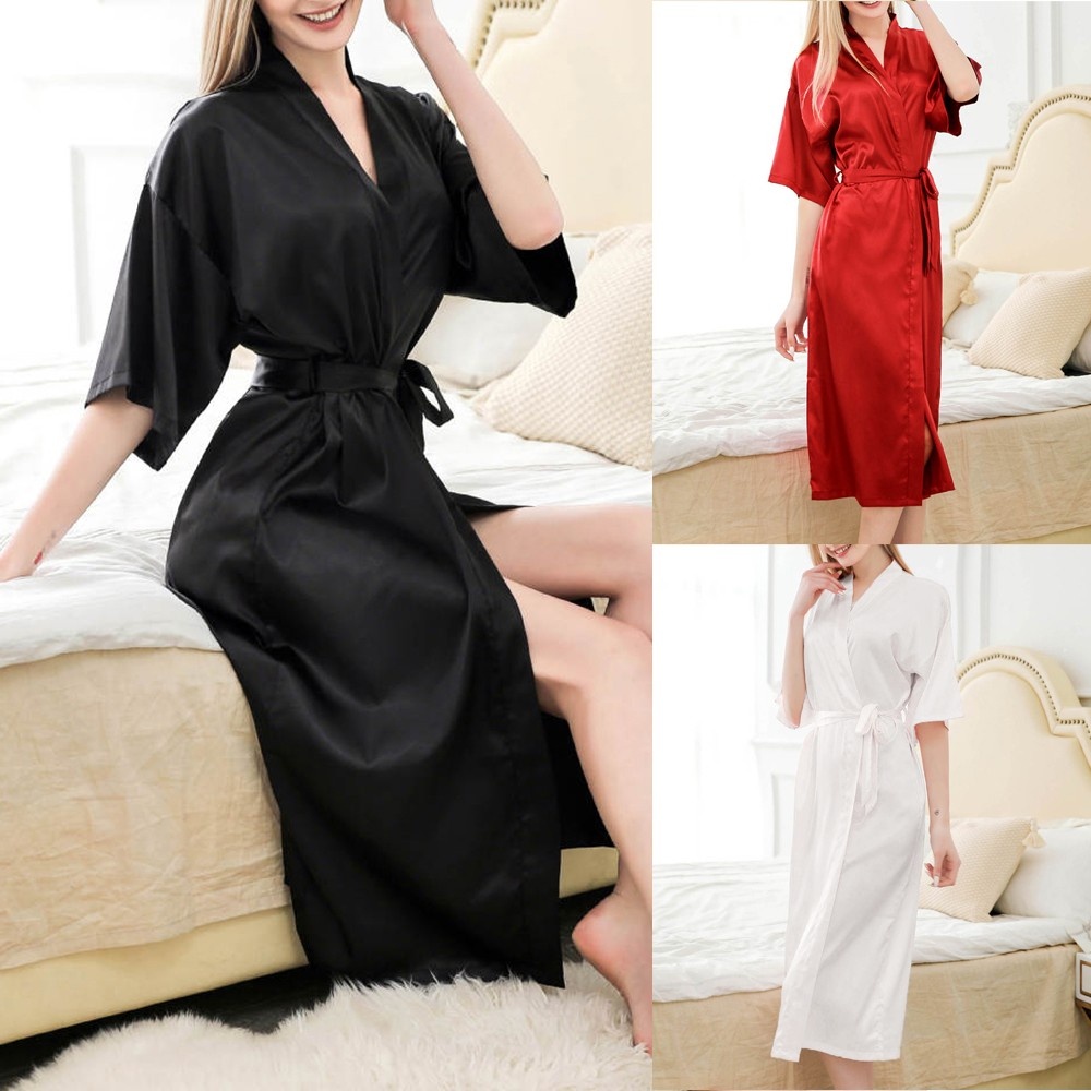 ⚡READY STOCK⚡ Womens Satin Long Robe Wedding Dressing Gown Sleepwear Lingerie Nightdress