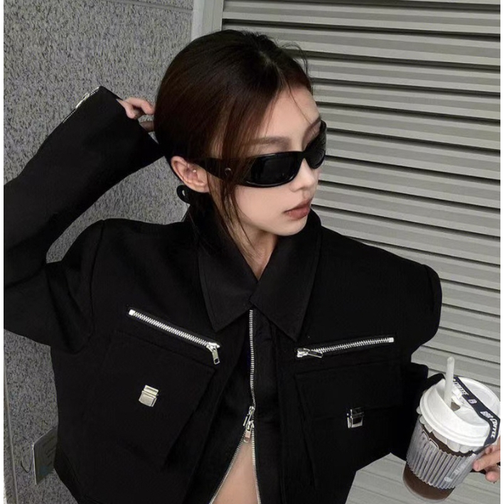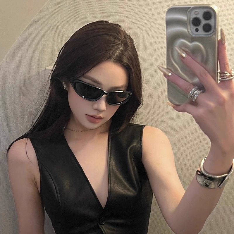 【READY STOCK】Y2K Fashion Sunglasses High-End Hip-Hop Sunglasses Retro Cat-Eye Glasses Unisex Spek Mata Hitam