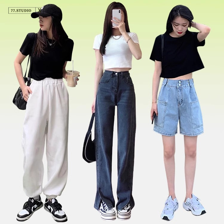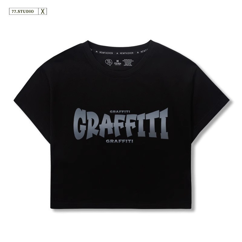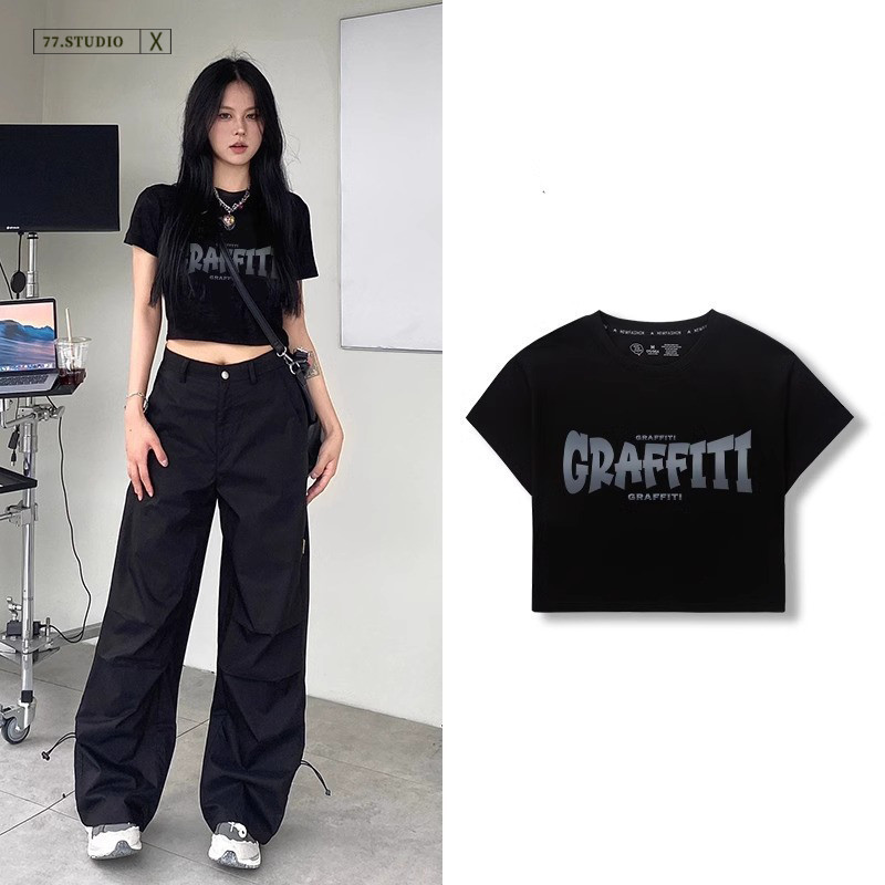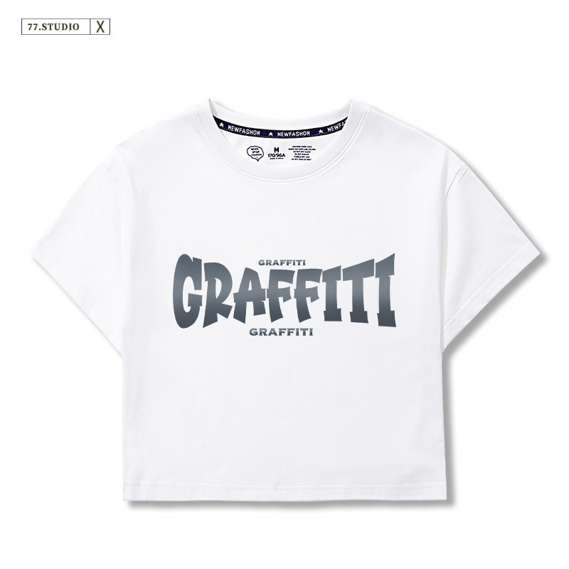 (Ready to ship) Printed short-sleeved crop top, soft and comfortable. #100% cotton T-shirt, women's belly-baring