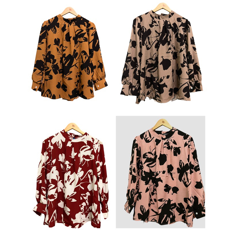 ?READYSTOCK?Blouse F58 corak / Kemeja design terbaru / Blouse viral leher bulat / Baju murah terkini / Baju design baru