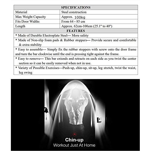 Realeos Door Way Pull Chin Up Bar Indoor Fitness Workout (62-100cm) R785
