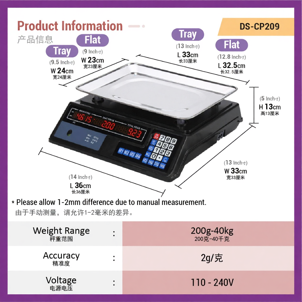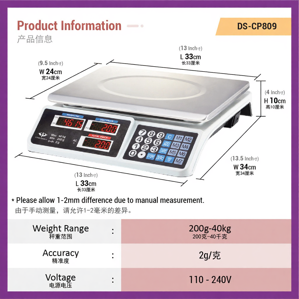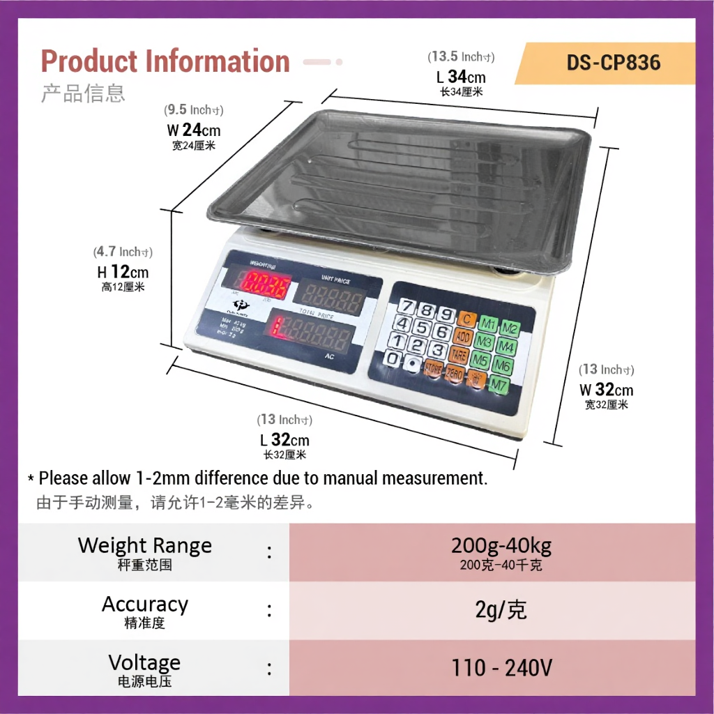 Rechargeable Digital Price Scale with LCD Display, 40kg Capacity (Multi Variations)