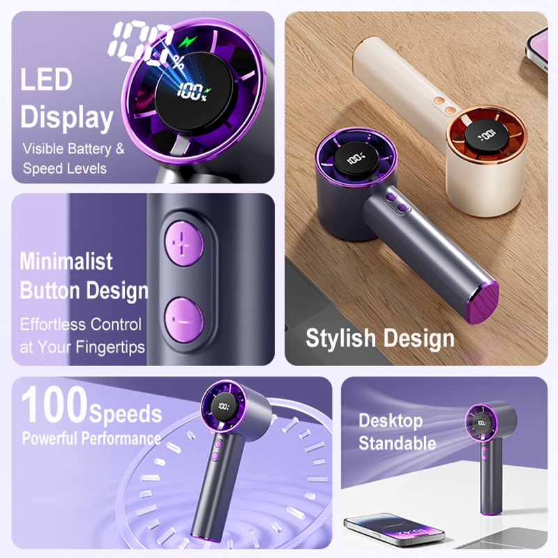Rechargeable High Speed Handheld Fan USB Mini Fan Portable Kipas Tangan With Led Display USB Charging Battery Hand Fans