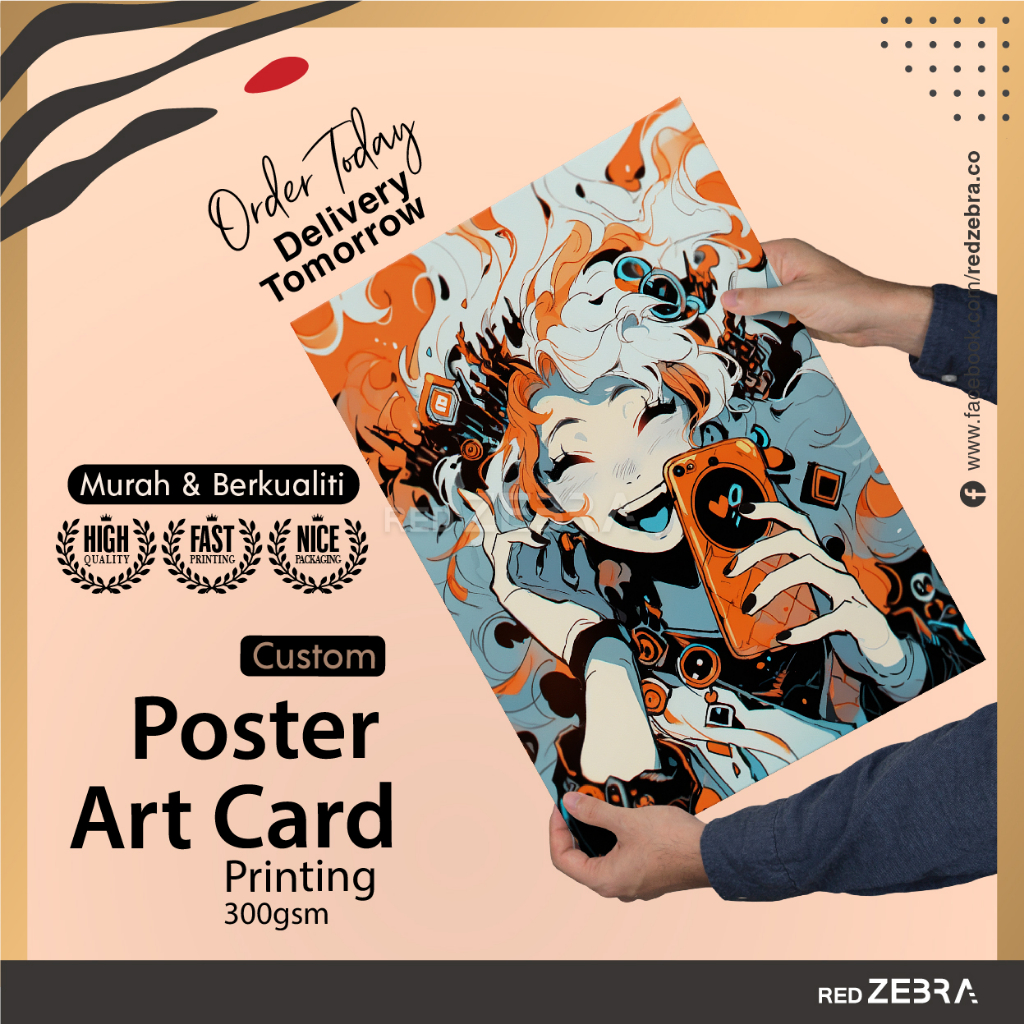 【 Red Zebra 】A3+ A3 A4 A5 Poster Printing ART CARD 300gsm | Urgent Siap | Print custom poster | Digital Print