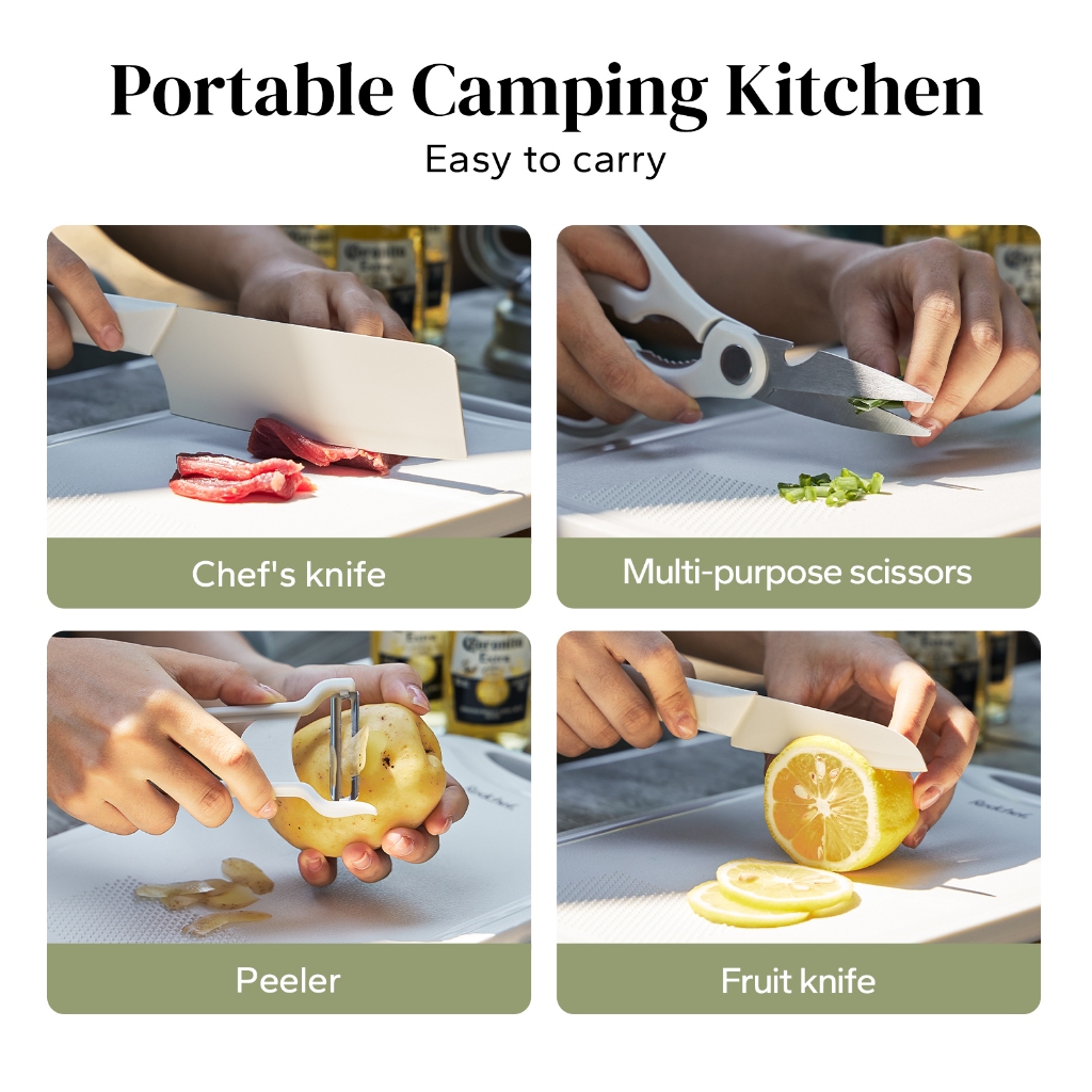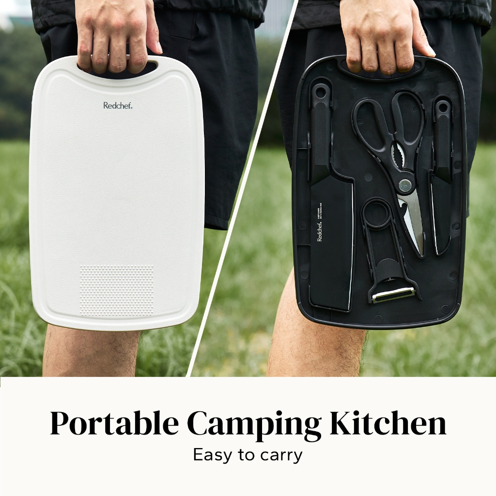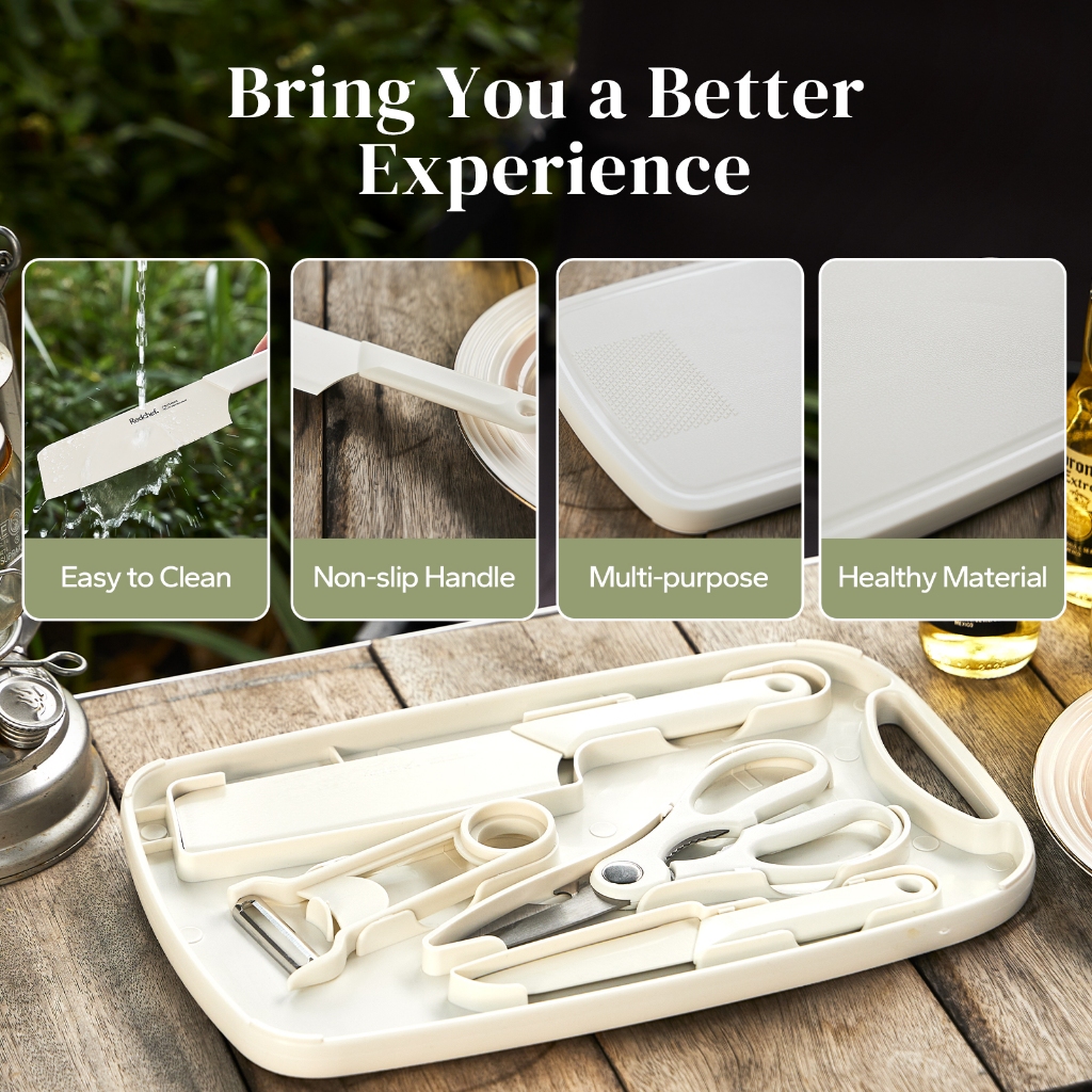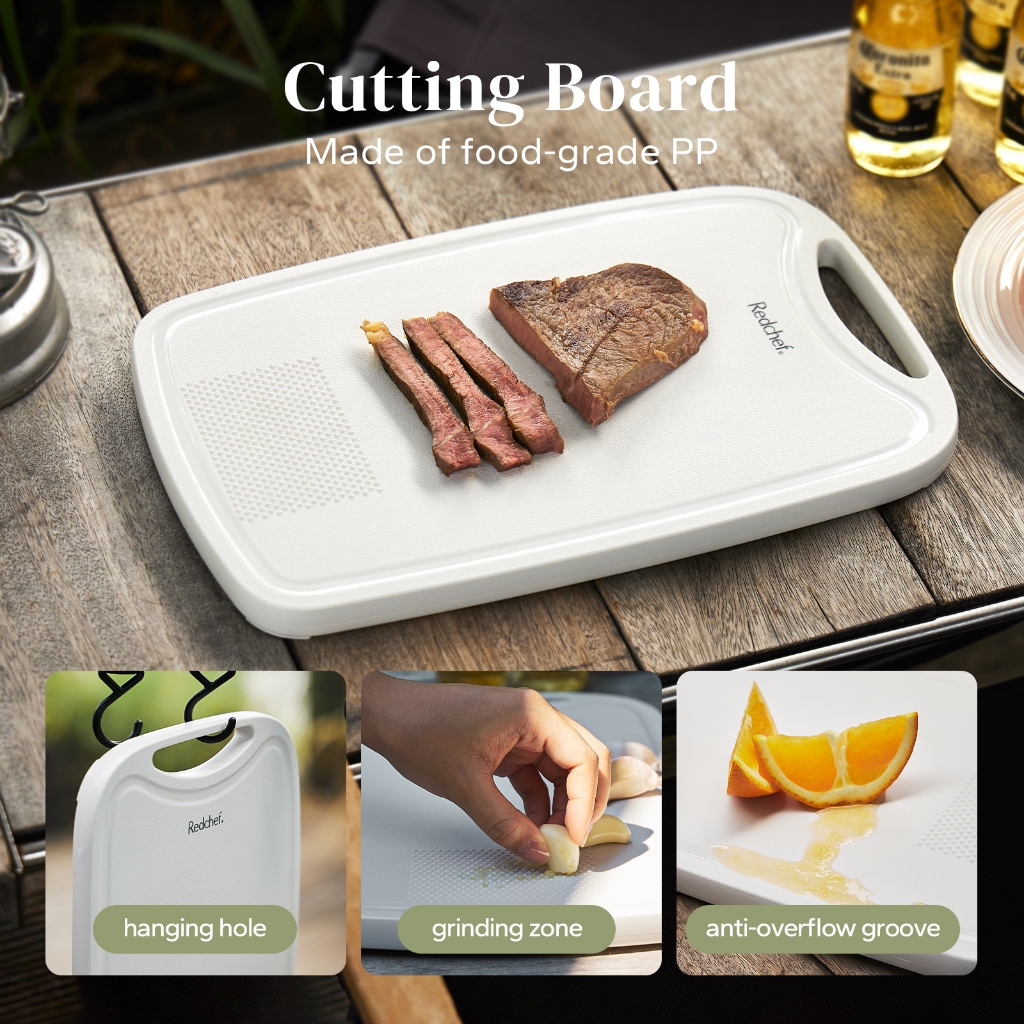 Redchef 5 in1 Cutting Board with Knife Set Anti Bacterial Non Slip Board & Stainless Steel Knife New Home Gift